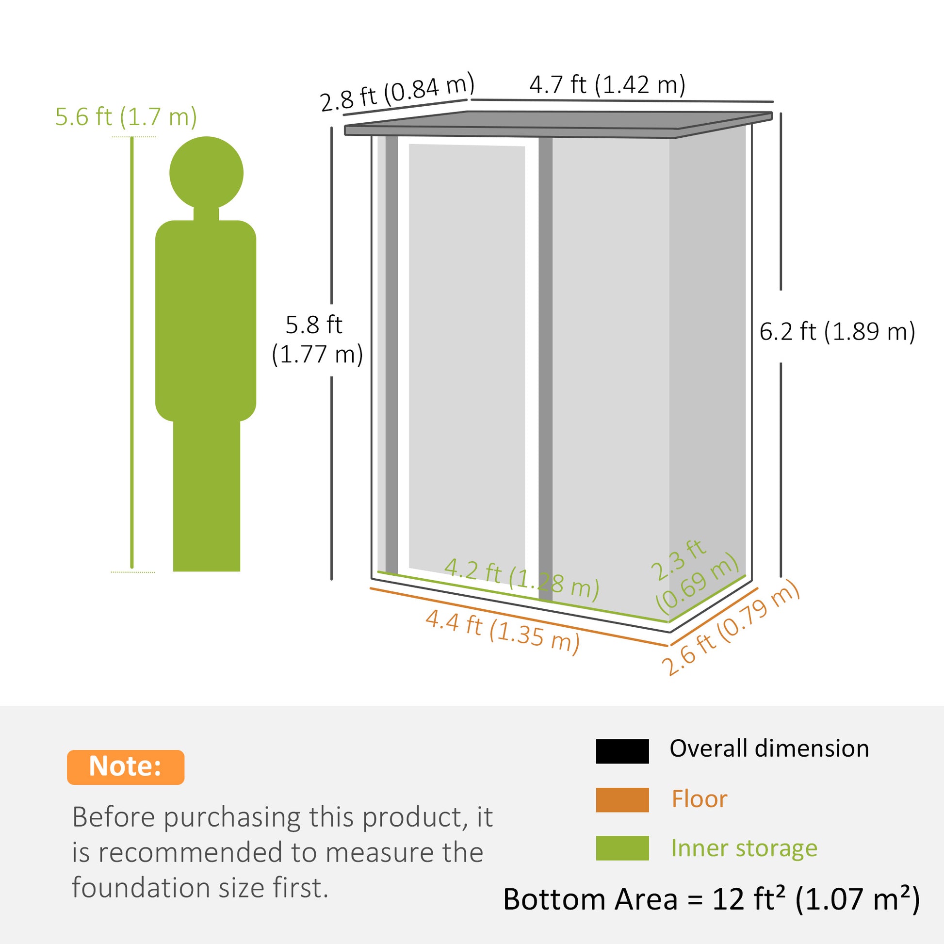 Keep garden equipment and more somewhere safe and protected. Look to this garden shed. Made from metal, it's tough - with a weather-resistant paint on top to make it suitable for outdoor use. The sloped roof prevents liquids building up. Inside, the space is completely free so you can store anything you want which fits in the space. How abbot adding a shelving unit if you want an organised inner space? Foundation kit not included.Specifications