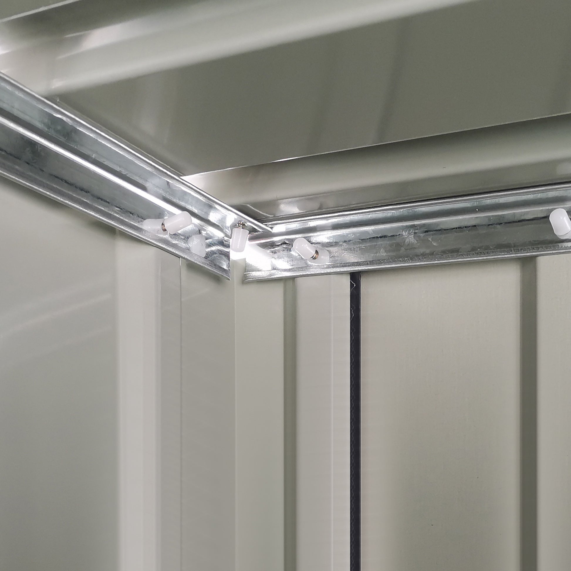 - Sloped roof so water doesn't build up and rot/rust the frame of metal shed