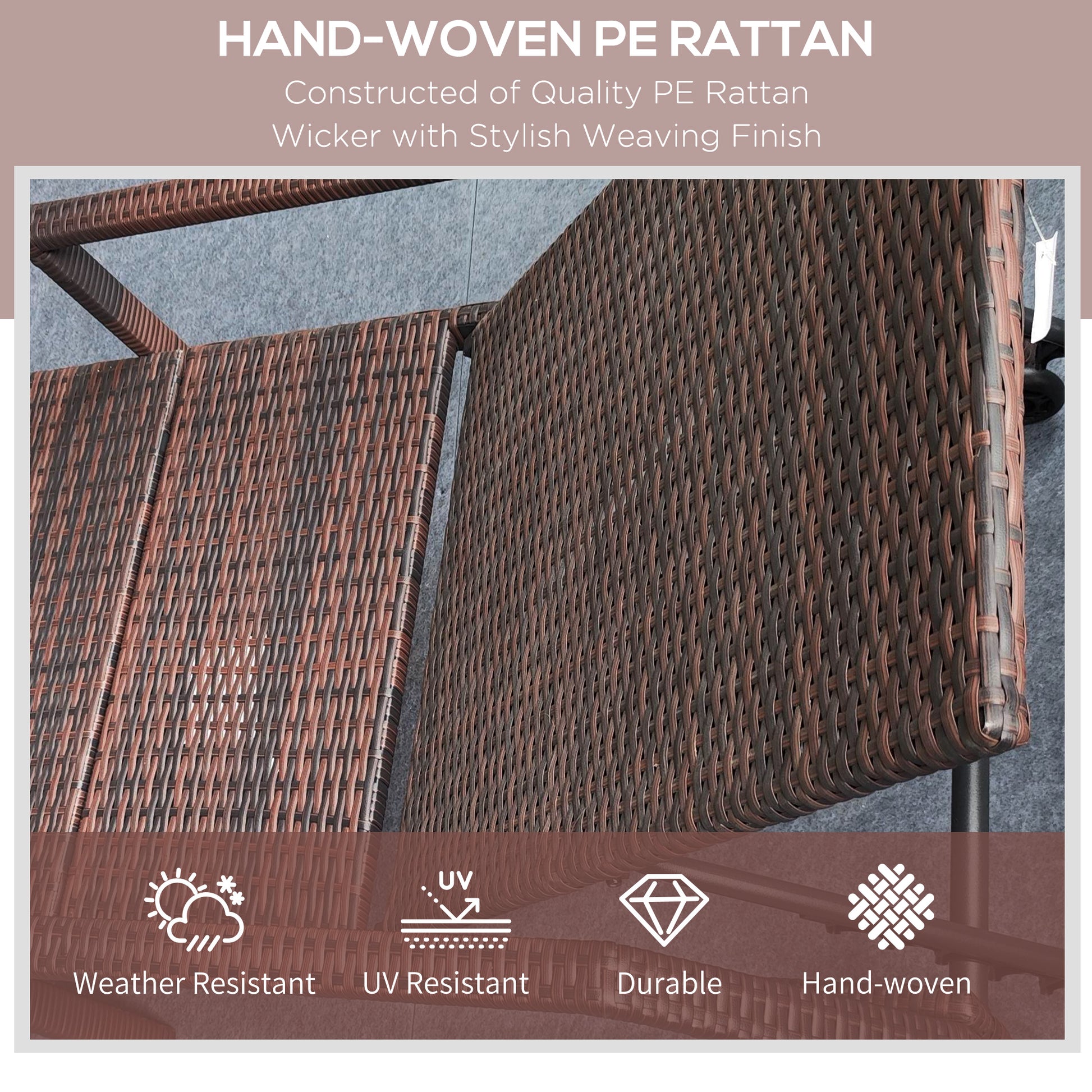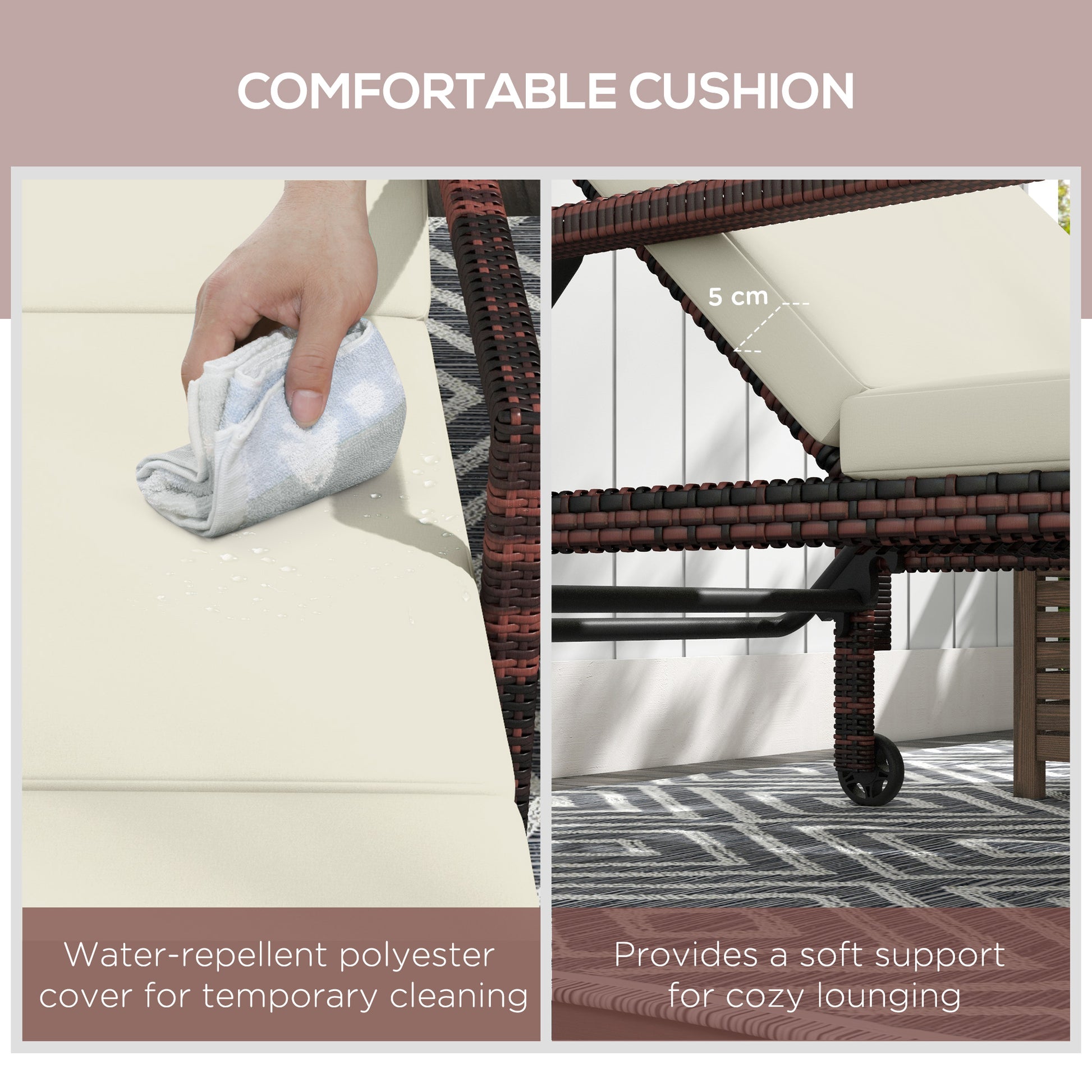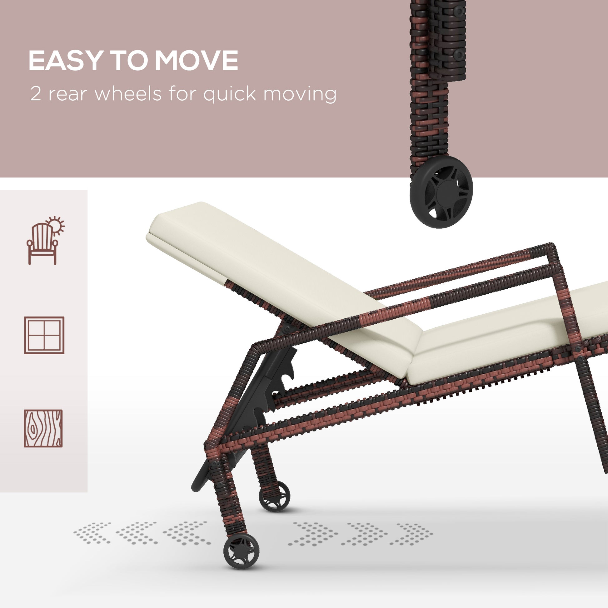 Outdoor Sun Lounger, Rattan Wicker Chaise Lounger with 5-Level Adjustable Backrest and 2 Wheels