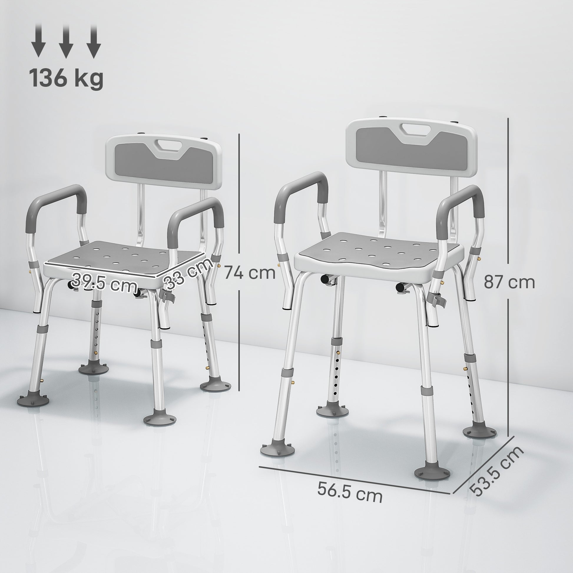 Padded Shower Stool with Arms and Back, 4 Suction Foot Pads, Grey