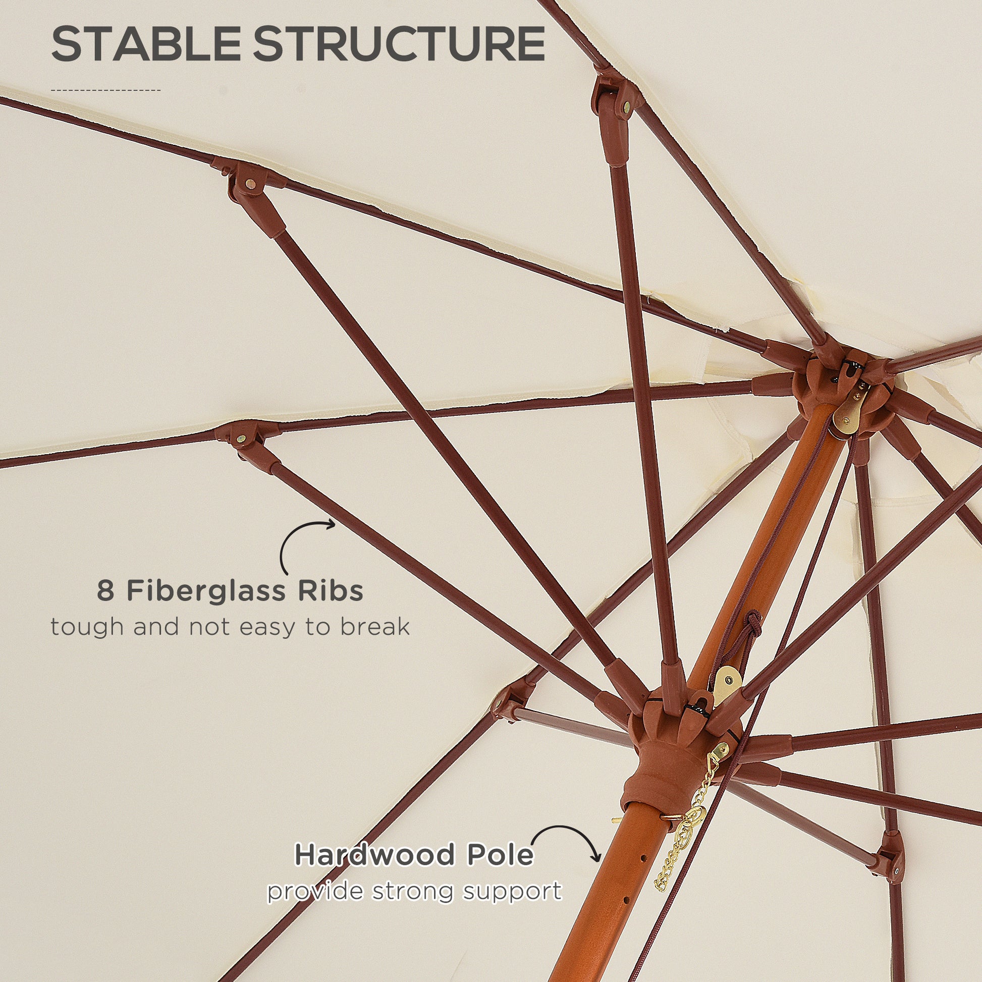 2.5m Wood Garden Parasol Sun Shade Patio Outdoor Market Umbrella Canopy with Top Vent, Cream White