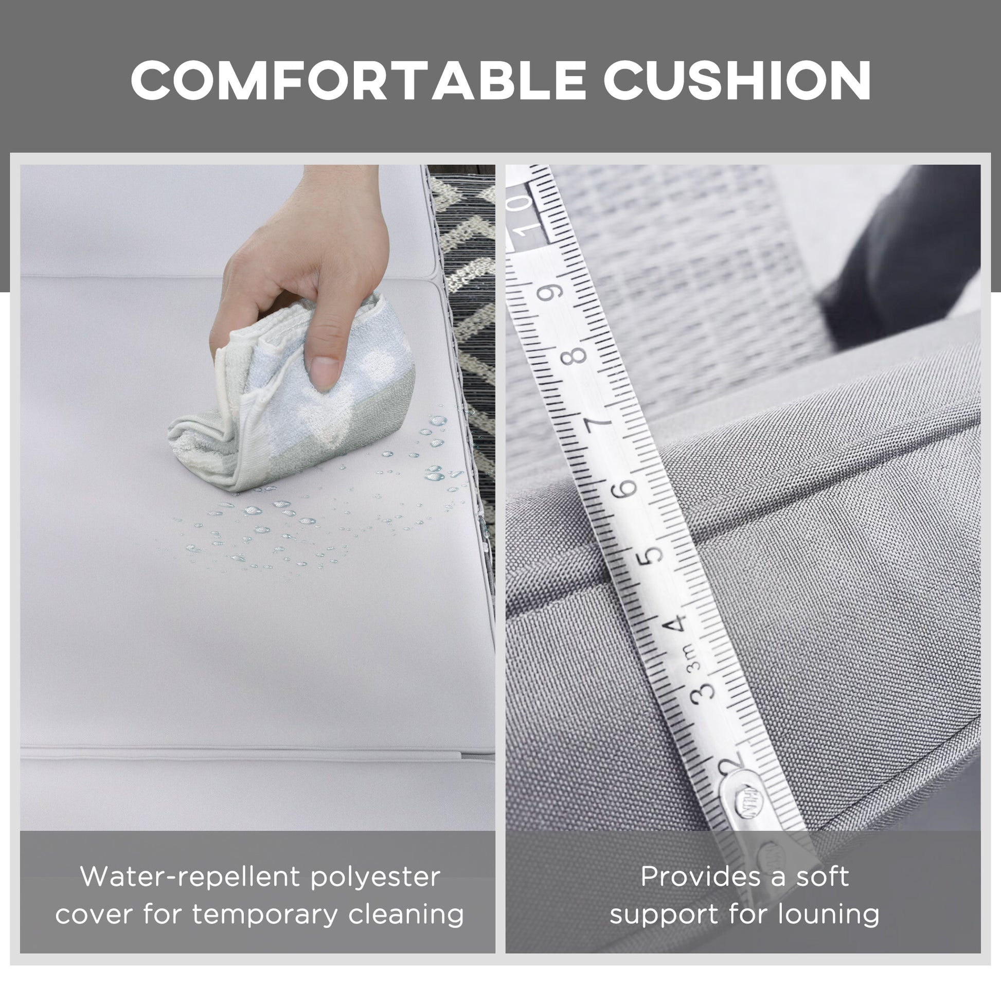 - Three long legs: Provides support at front, middle and end of this sun lounger with cushion - keeps you supported.