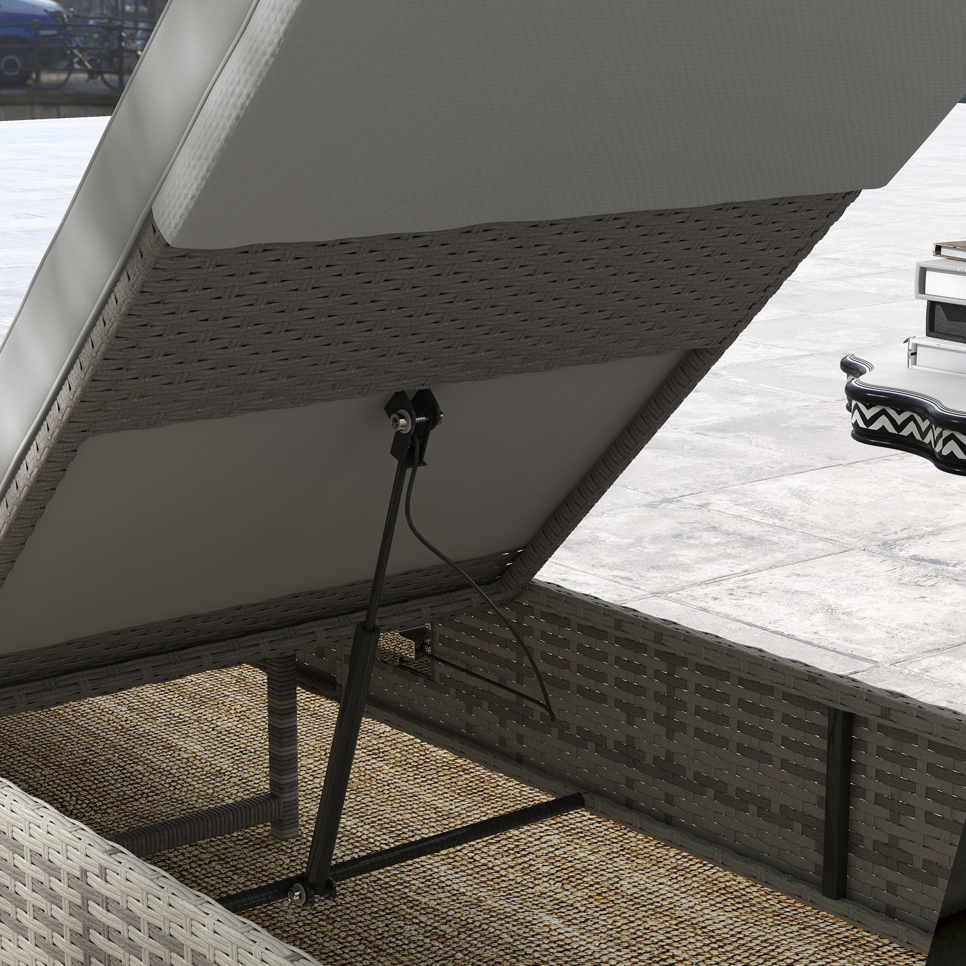 - 29-98Hcm reclining back: Set the position of this grey sun lounger to any angle you want. Air rod adjustment is easy to use. Sunbathe, read a book and more: the choice is yours.