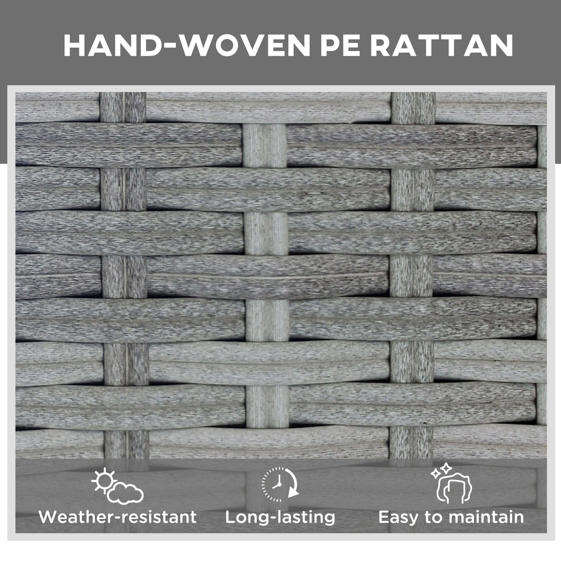 - Strong metal frame, wrapped with stylish, durable and protective plastic wicker