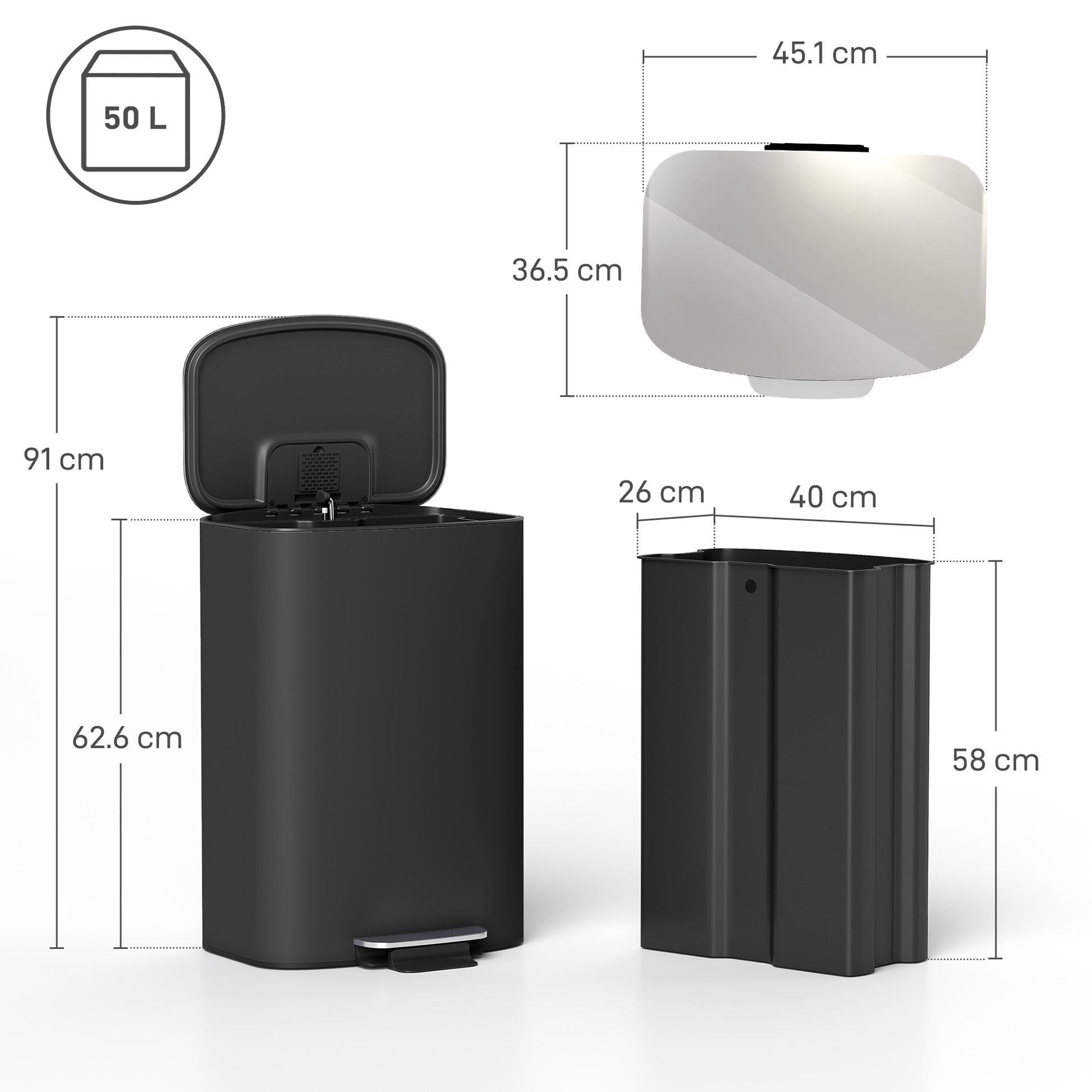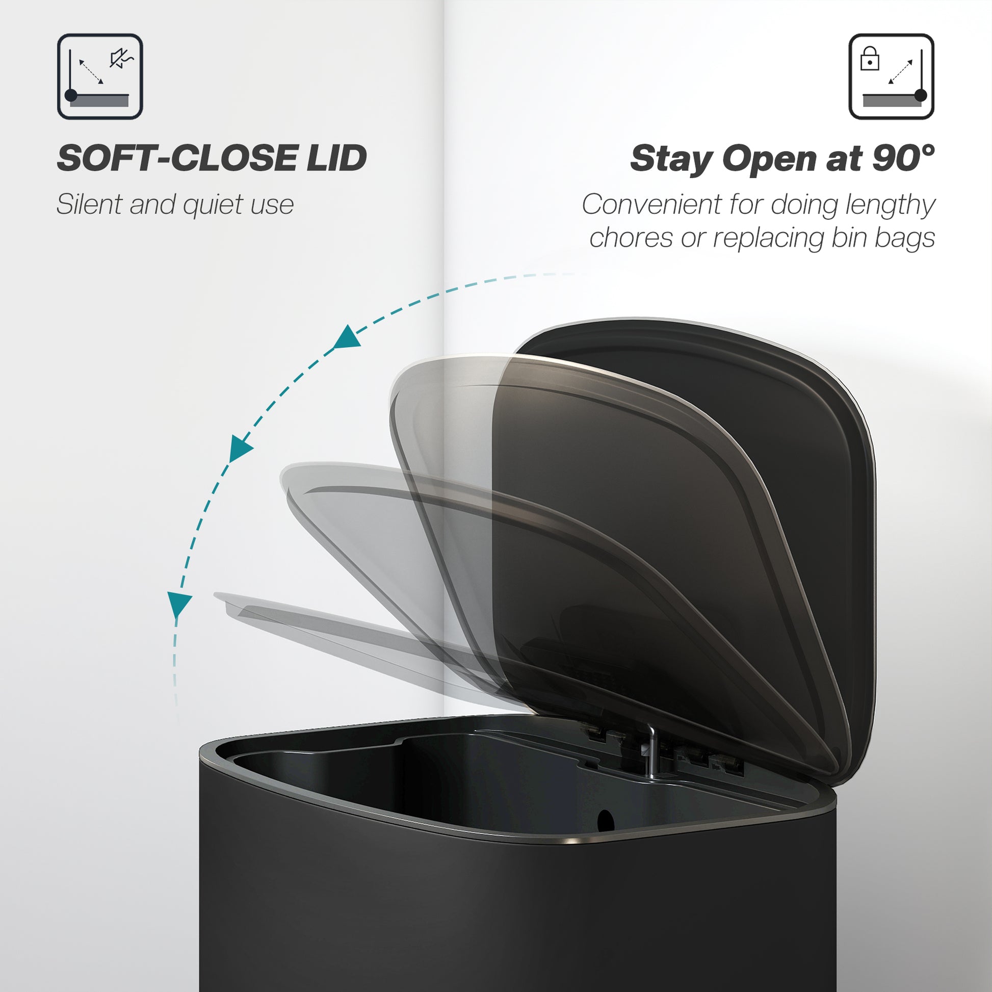 Pedal Bin with Soft-Close Lid, 50L Kitchen Bin with Carry Handle Black