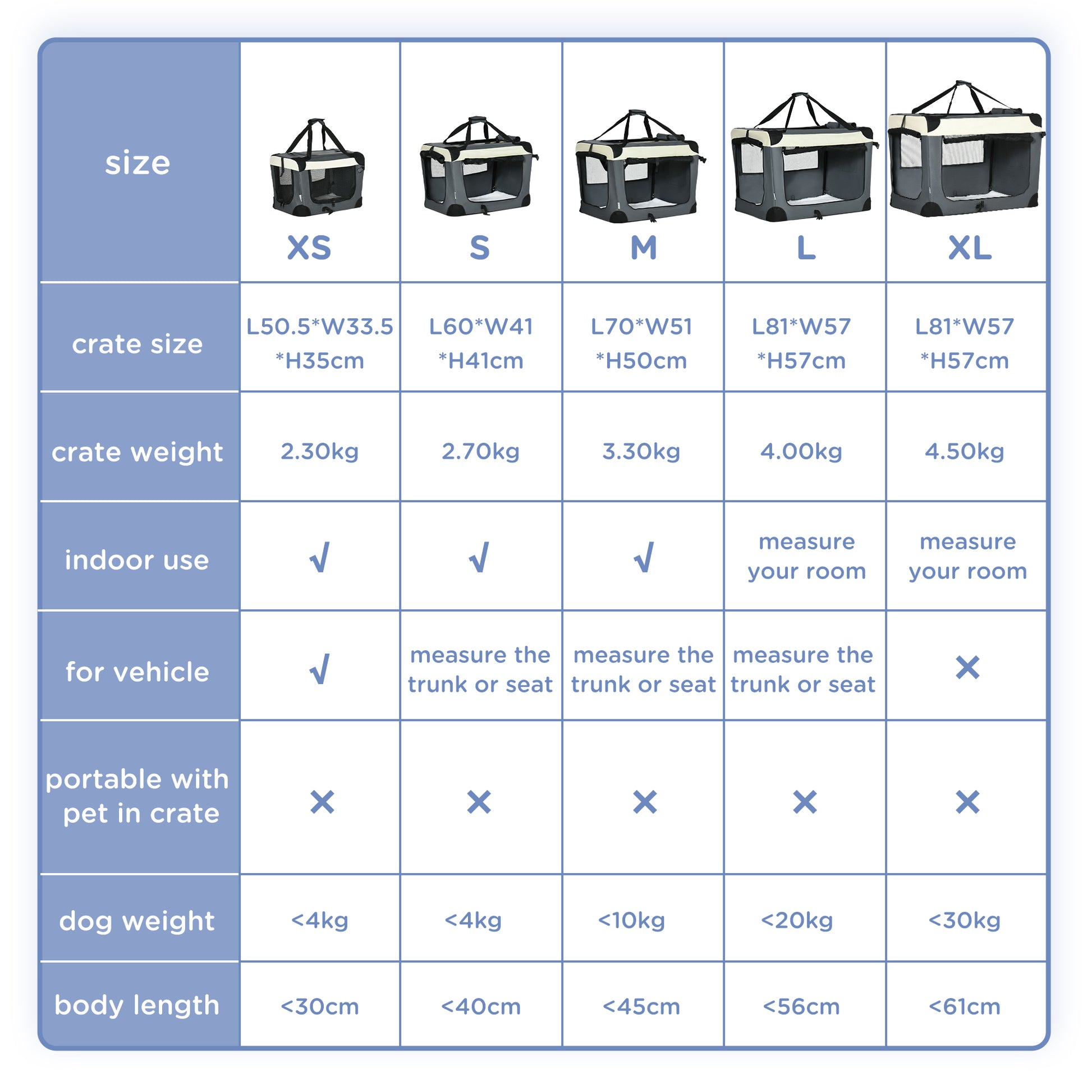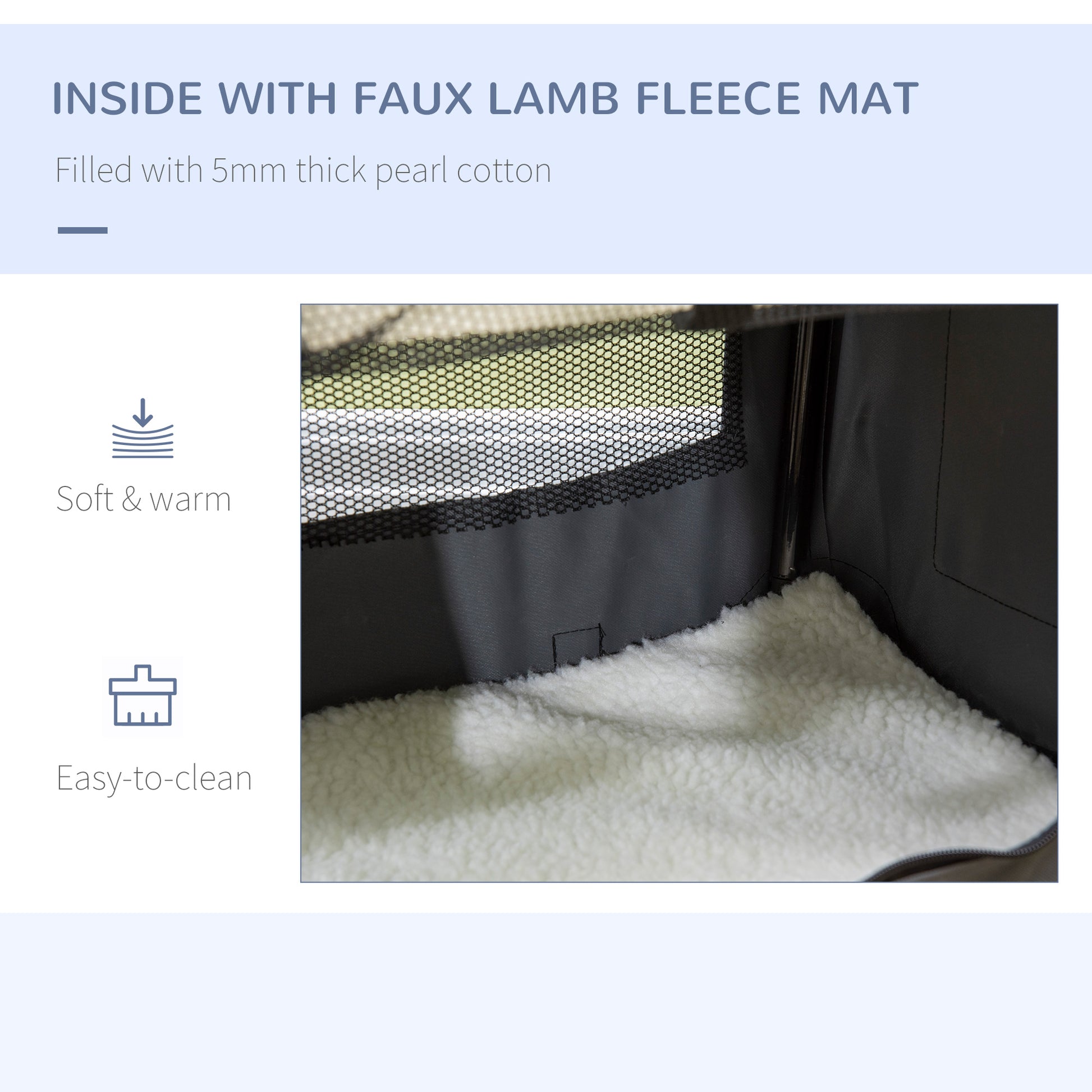 Struggle to travel with pets? With this PawHut fabric dog crate, you'll struggle no more. Its adjustable strap goes over your shoulder, so it's much easier carrying cats or miniature dogs. Three doors for easy access – they'll enter a spacious area, where they'll relax on a soft cushion, whilst the air flows through the mesh window to keep them cool. It's foldable and comes with a bag, saving space when stored away. Not just for travelling, it can be used at home – a place for pets to lounge.