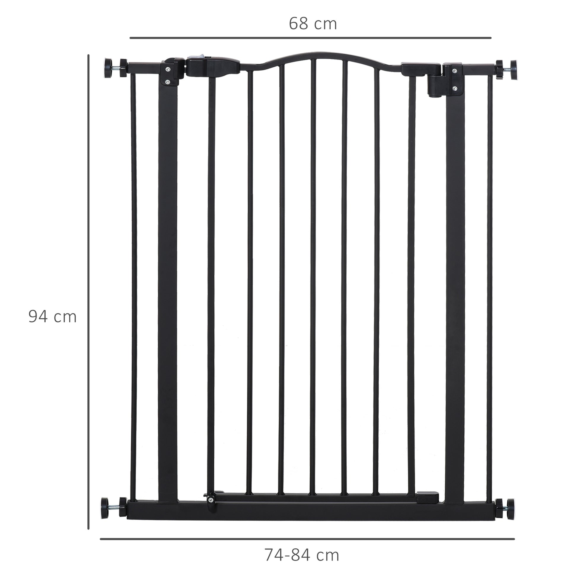 Dog Gate Pressure Fit Pet Tall Stairs Gate Safety Barrier Auto Close, 94cm Extra Tall, 74-80cm Wide, with Double Locking, Black