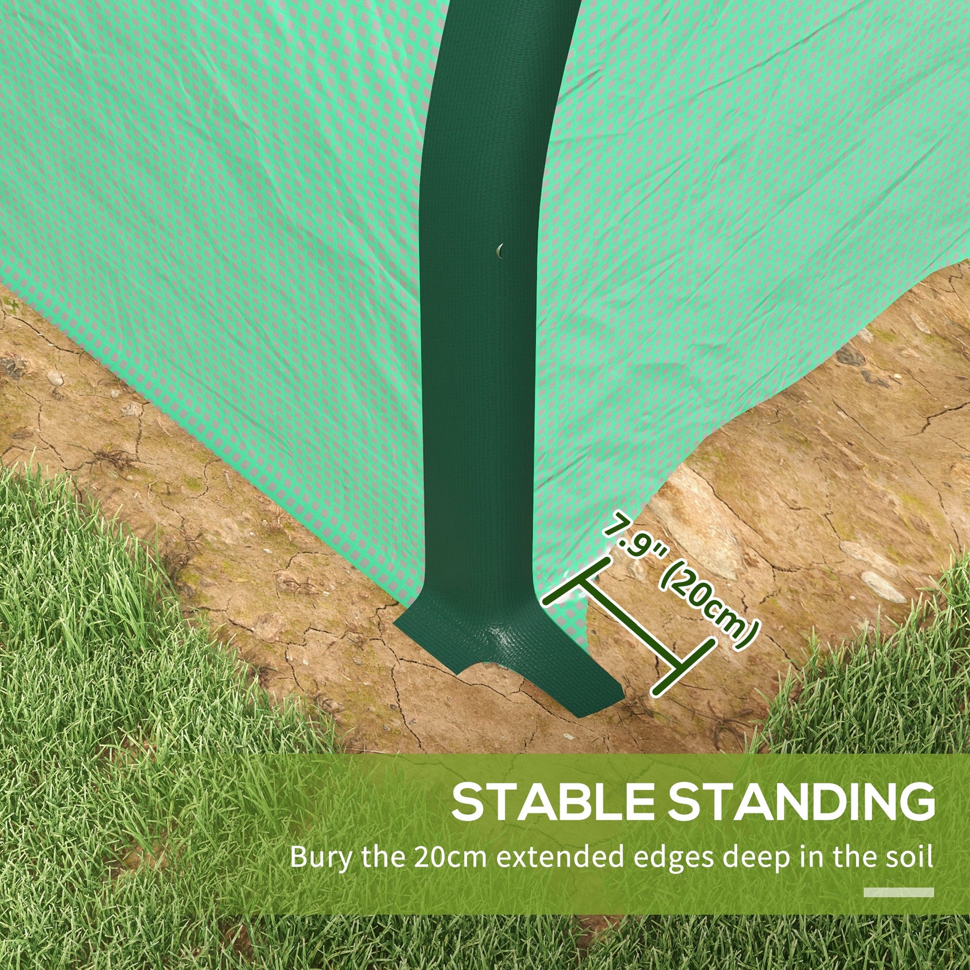 - 20cm long cover edges to bury into the soil for added stability