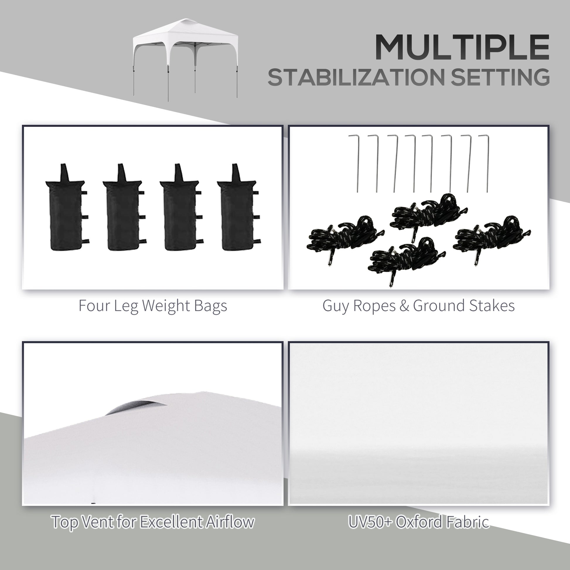 This Outsunny folding party tent is great for outdoor gatherings, camping trips BBQs, car boot sales and much, much more. It's easy to put up - this garden tent will be up in a matter of minutes due. The powder coated steel frame is strong, with included accessories to fix tighter to the ground. The UV50+ fabric canopy protects you from direct sunlight and light showers. And when done? Simply fold away into the wheeled carry bag.