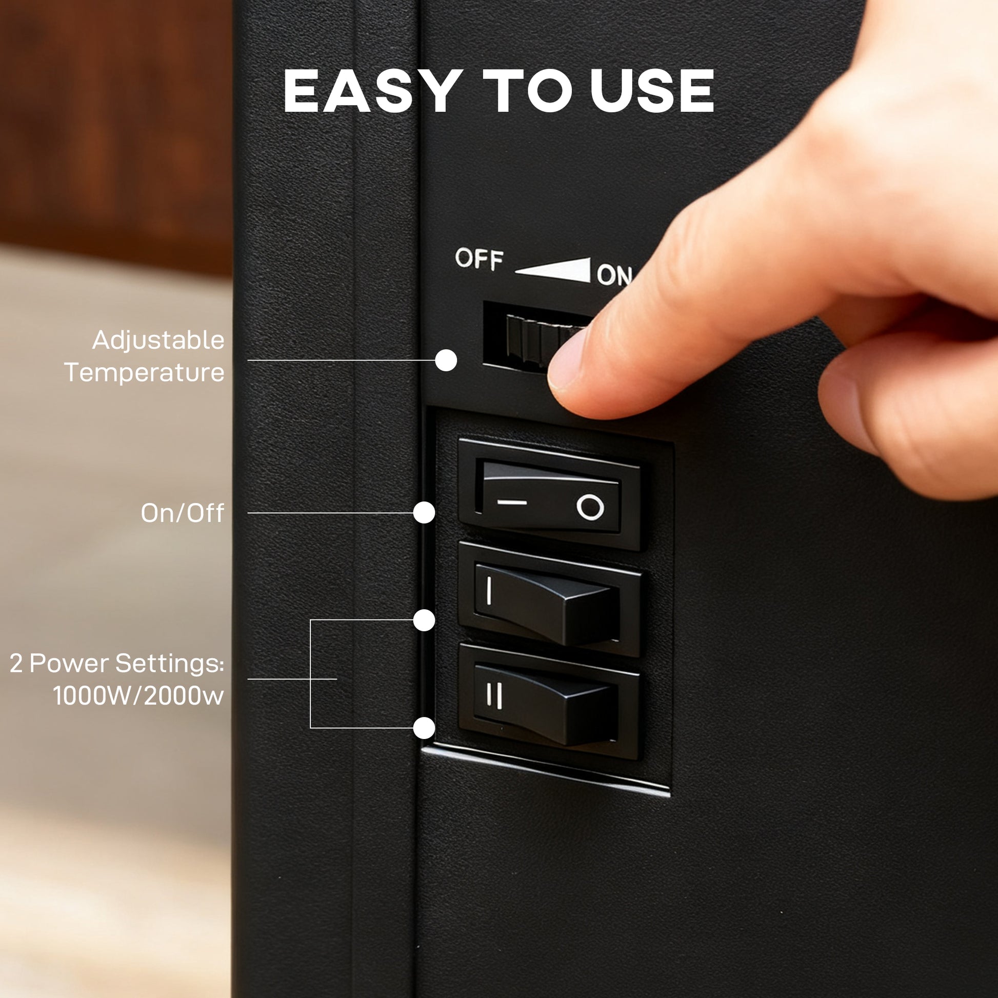 Portable Fireplace with Adjustable Thermostat, 2 Heat Settings, Black