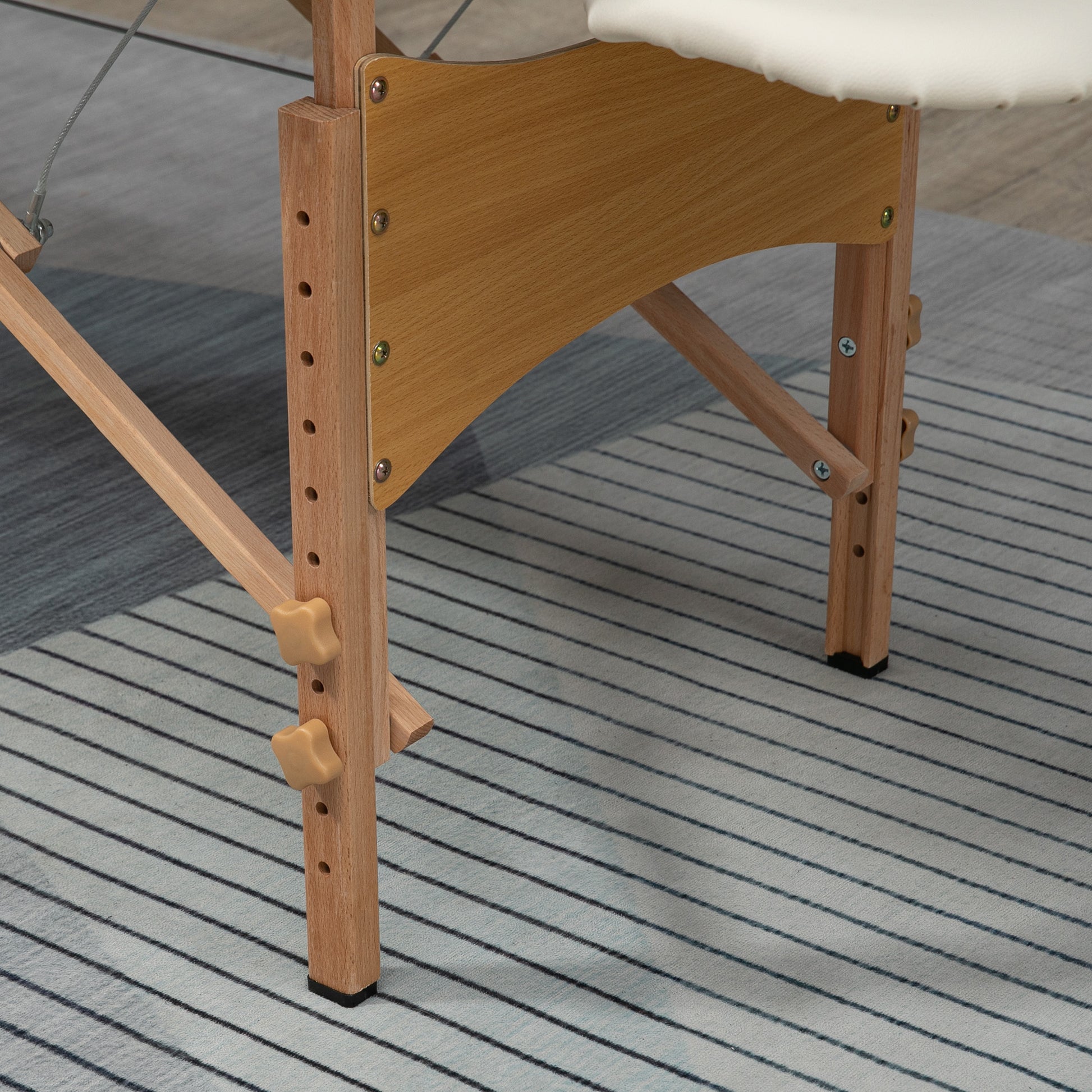 Portable Massage Bed, Folding Spa Beauty Massage Table with 2 Sections, Carry Bag and Wooden Frame, Cream