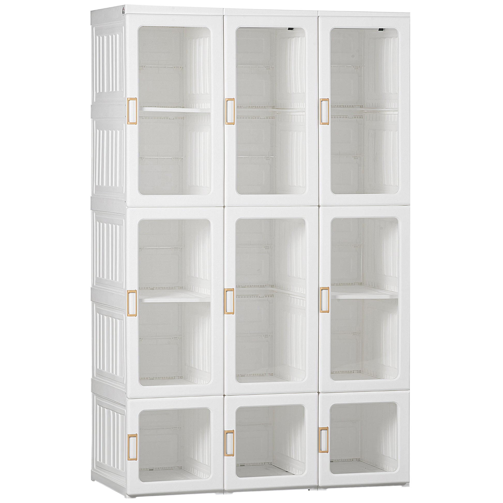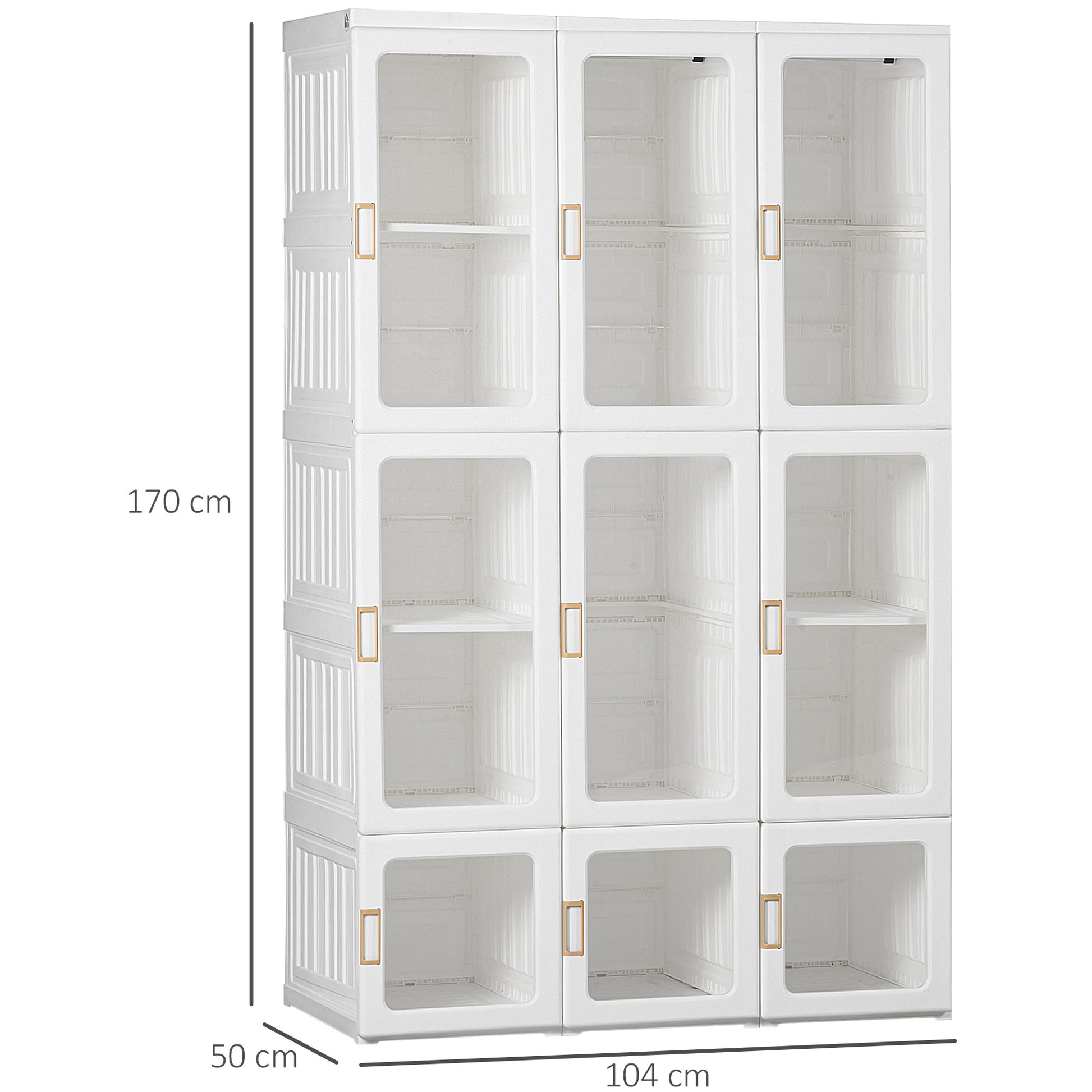 Add a touch of simplicity and style to your home with this portable wardrobe. Featuring clear door panels and a bright, modern design, it fits perfectly in your living room or any space. With modular compartments and two hanging areas, it provides lots of storage for your clothing while combining functionality and elegance to meet your needs.Specifications