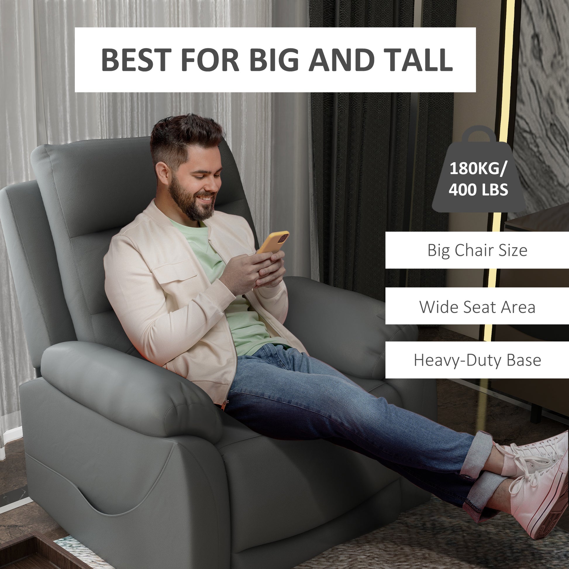 - Make your life easier with this our riser and recliner chairs from HOMCOM. If you or your family are suffering from mobility issues, the leather reclining chair will be your practical choice. With the touch of a button, you can go from a seating position to a reclined position, or almost a standing position without effort. There are 8 vibration points on the back, waist, thighs and calves to relax your body fully. Generously padded upholstery delivers exceptional comfort and relaxation.