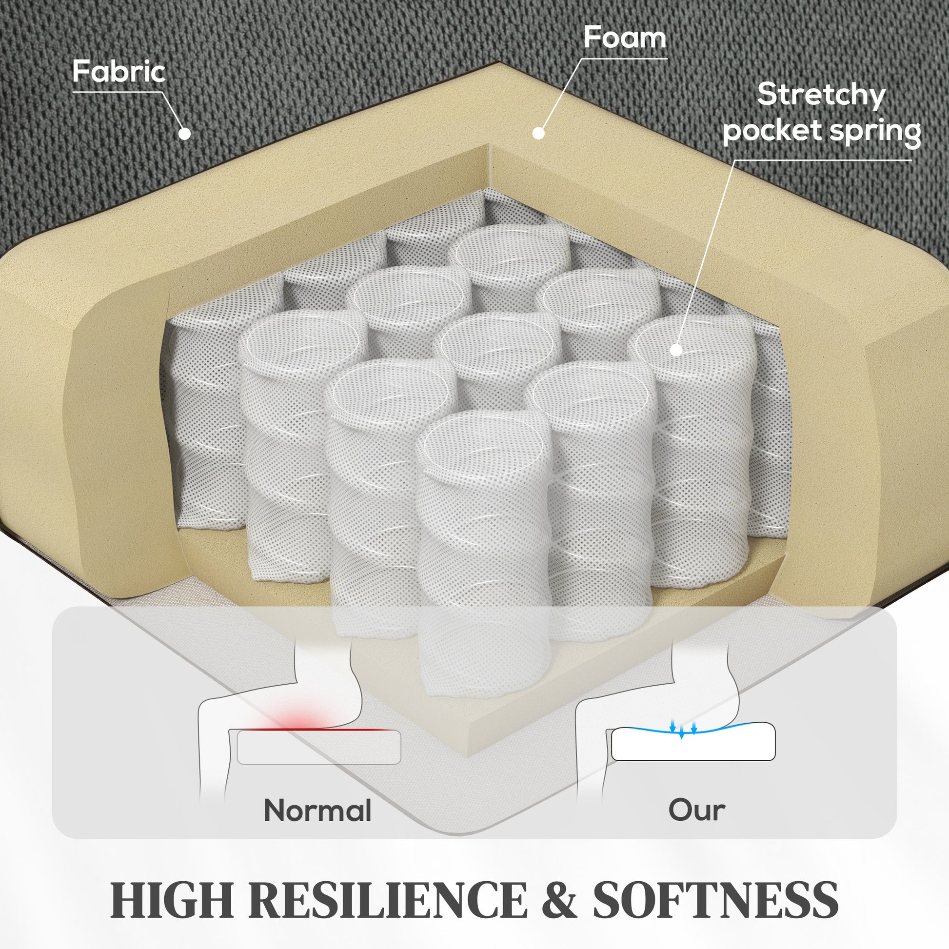 - Pocket springs and high-density foam padding provide stretchy, resilient support