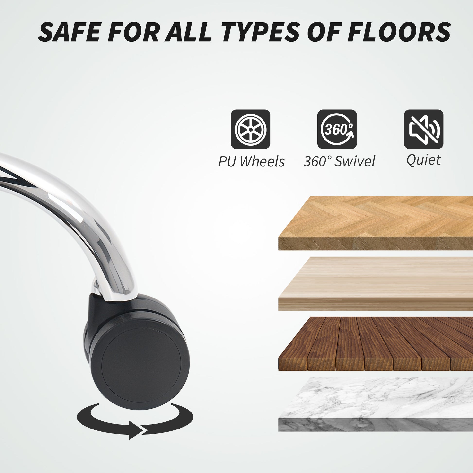 - Large PU-wheeled base to move chair around easily, quietly and is floor friendly