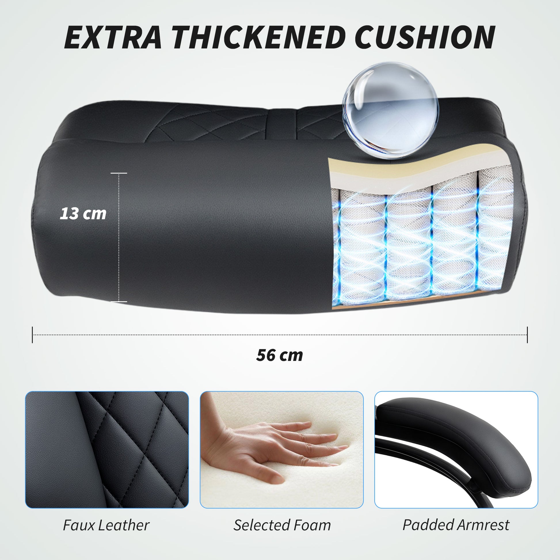 - Thickness: 13 cm (Seat), 16 cm (Back)