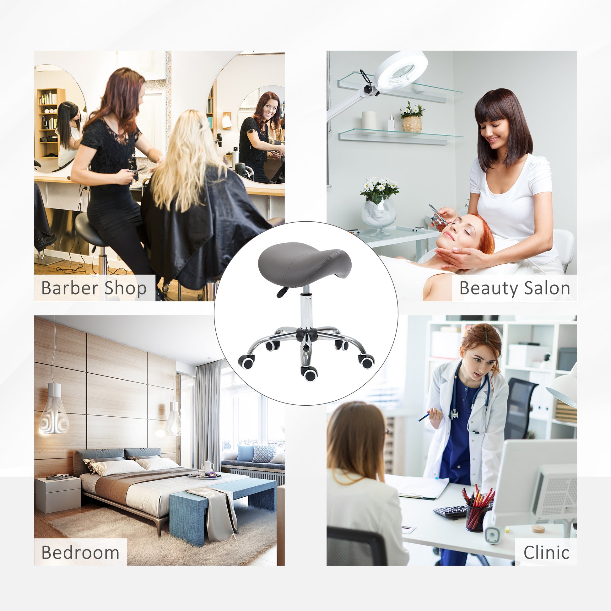 PU Leather Saddle Stool w/ Moulded Padded Seat Adjustable Height Grey