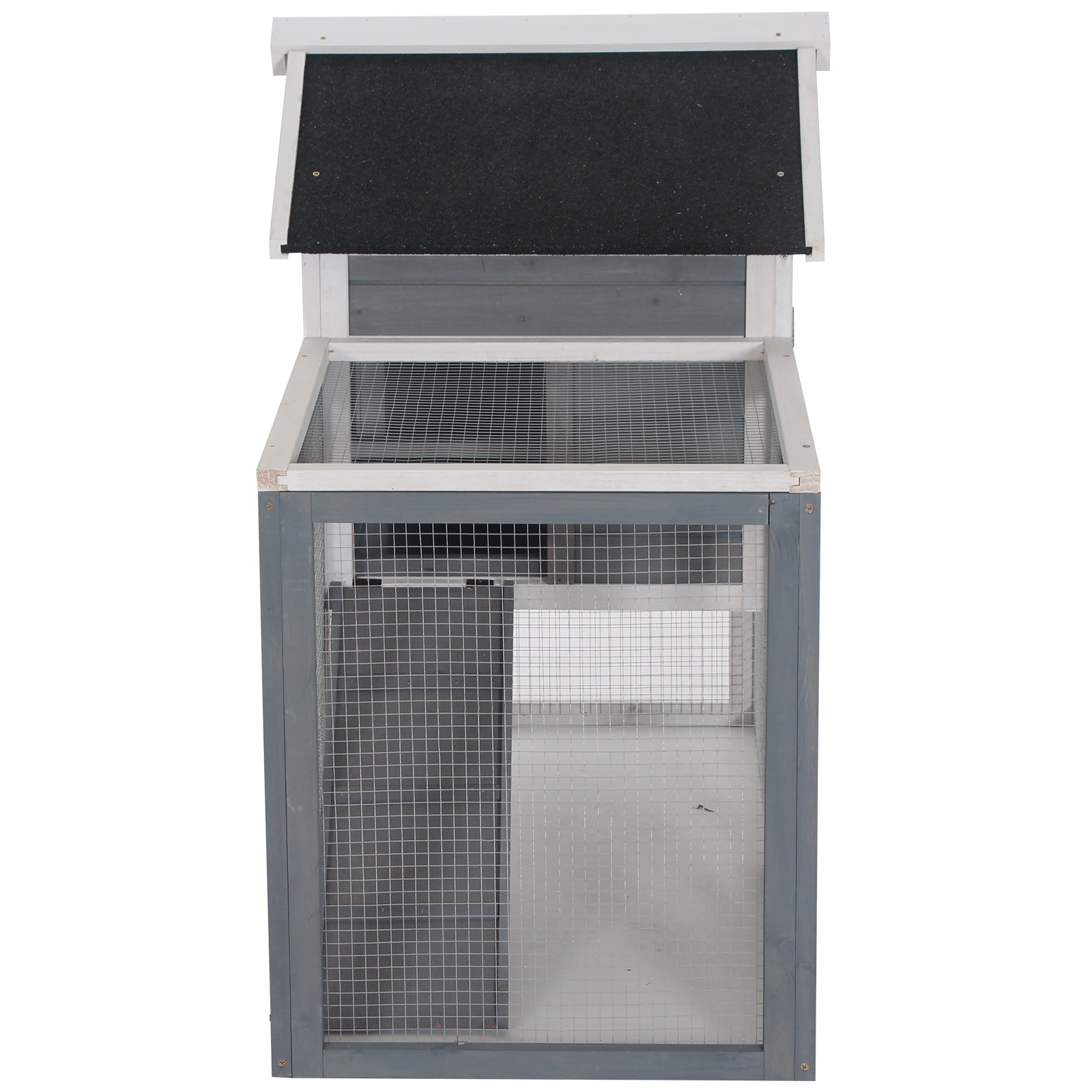 The ideal home for small pets – this PawHut rabbit hutch with run provides space and comfort. The two-story design is made from fir wood and coated with water-based paint, protecting it against mild weathering. There is a steel wire outdoor rabbit run, allowing your pet to enjoy fresh air without them escaping. Two easy-open and a pull-out tray ensure easy access inside for cleaning and upkeep. It's finished with asphalt on the roof for extra protection.