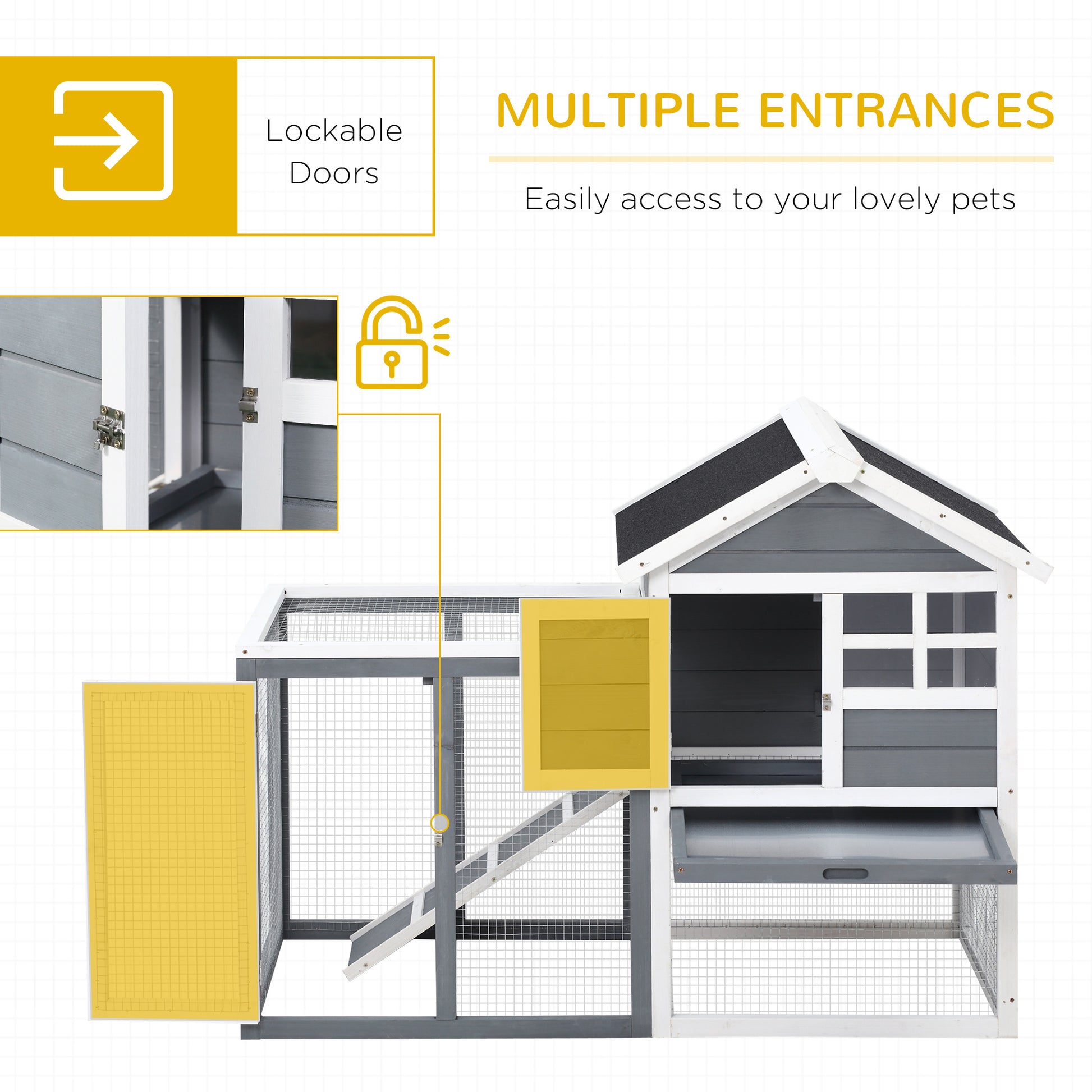 2 Tier Rabbit Hutch Outdoor, Wooden Guinea Pig Hutch, Bunny Cage Small Animal House with Ramp Rabbit Run Pull Out Tray, Grey, 122 x 62.6 x 92 cm