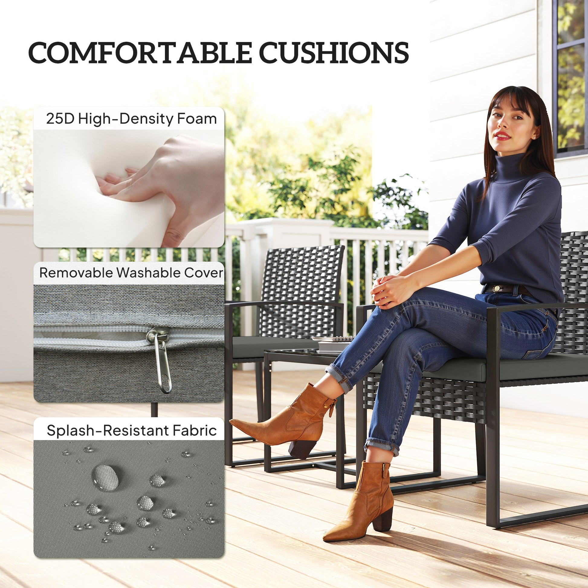 Rattan Bistro Set, 3 PCS Garden Furniture with Cushion, Dark Grey