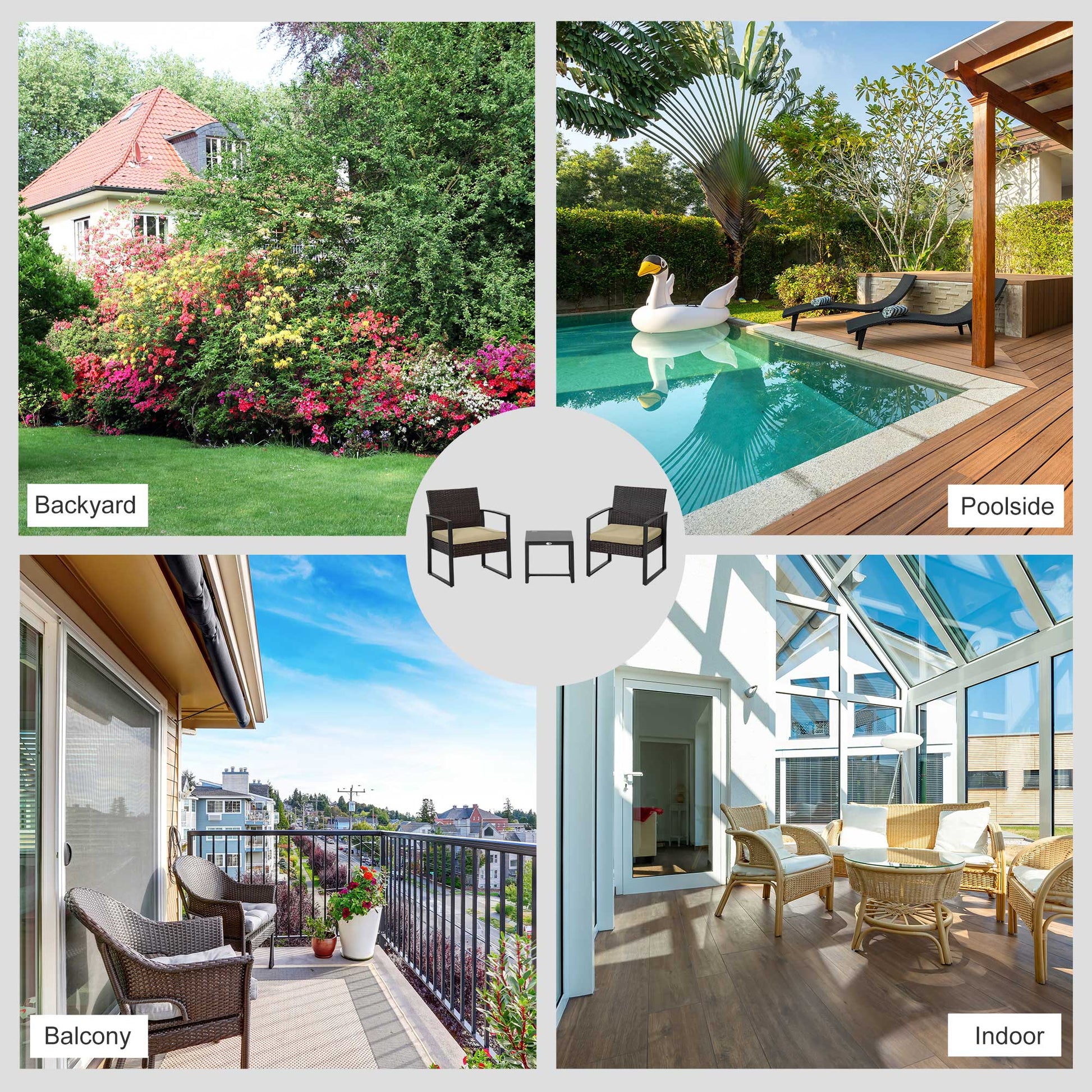 PE Rattan Garden Furniture 3 pcs Patio Bistro Set Weave Conservatory Sofa Coffee Table and Chairs Set Beige