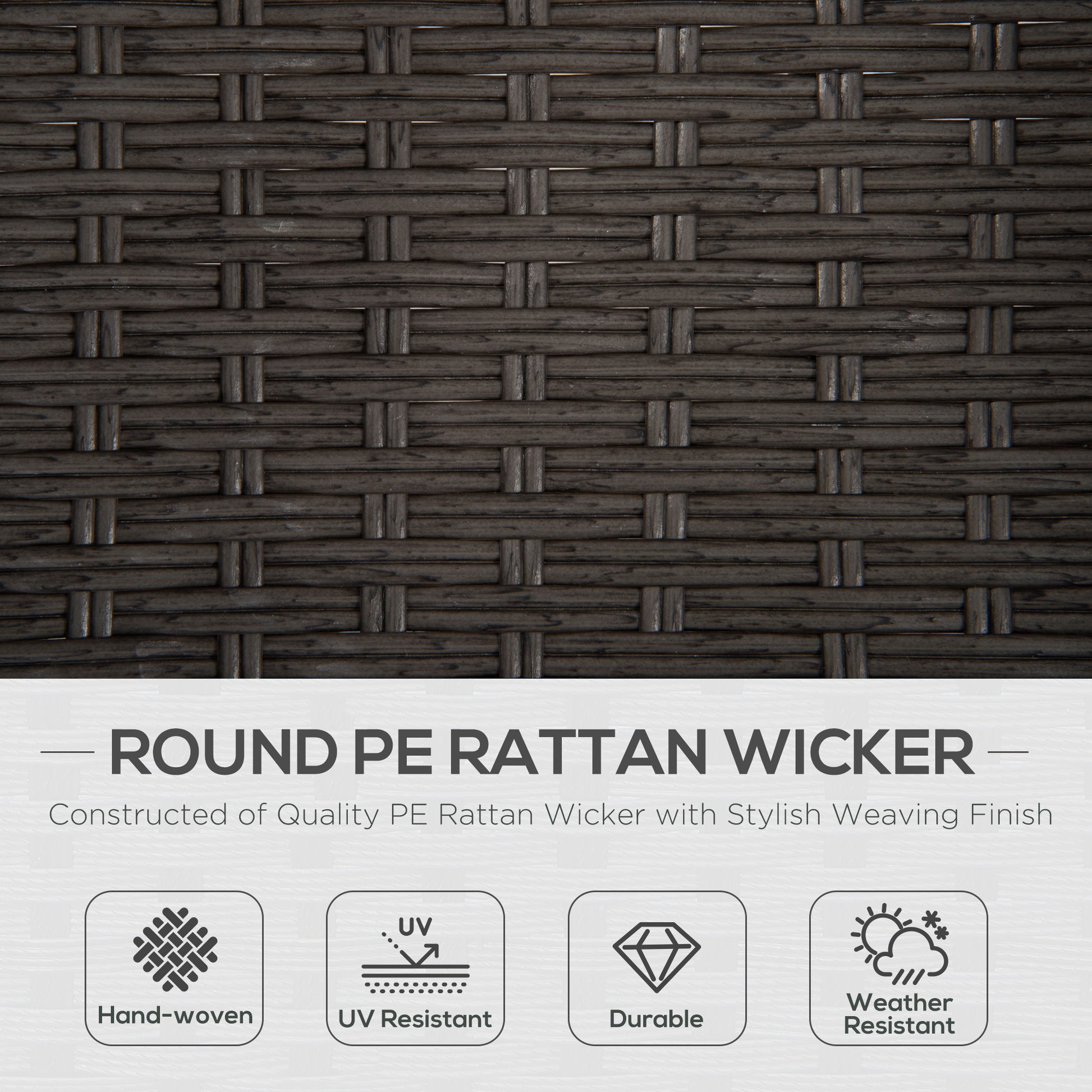 This 3 pieces patio resin wicker bistro set from Outsunny is a good choose for your interior and outdoor space. The set includes two ergonomically designed chairs and a round coffee table. Made of round PE rattan wicker and durable steel frame. The tempered glass tabletop allows easy cleaning with a damp cloth, this garden furniture sets for 2 offers reliable durability that naturally withstands most weather conditions. Let this bistro set from Outsunny brings you outdoor leisure time.