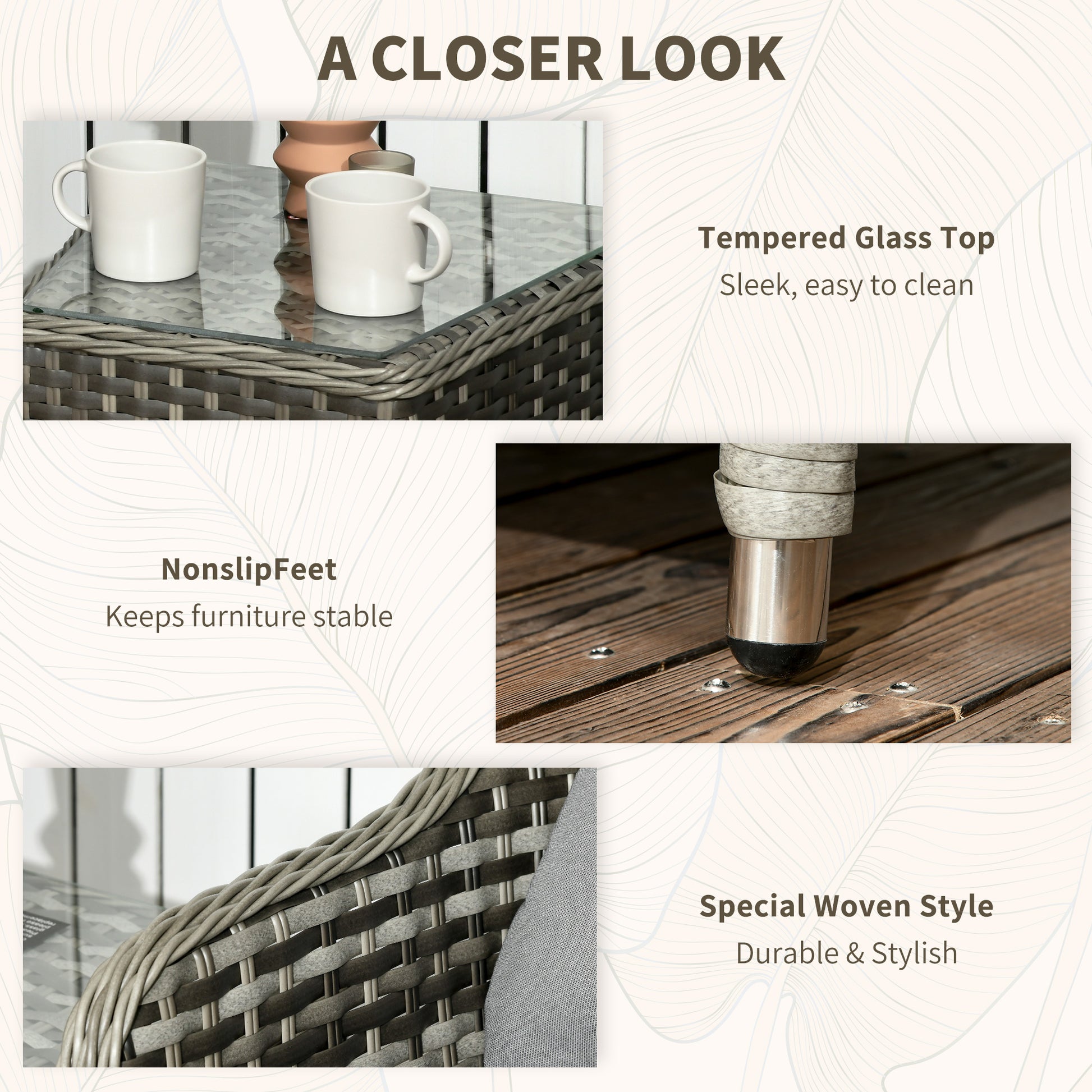 Outsunny 3 PCS Rattan Seating Set | 2 Armchairs & Table | Outdoor Patio Furniture, Bistro Set w/ Cushions Glass Tabletop