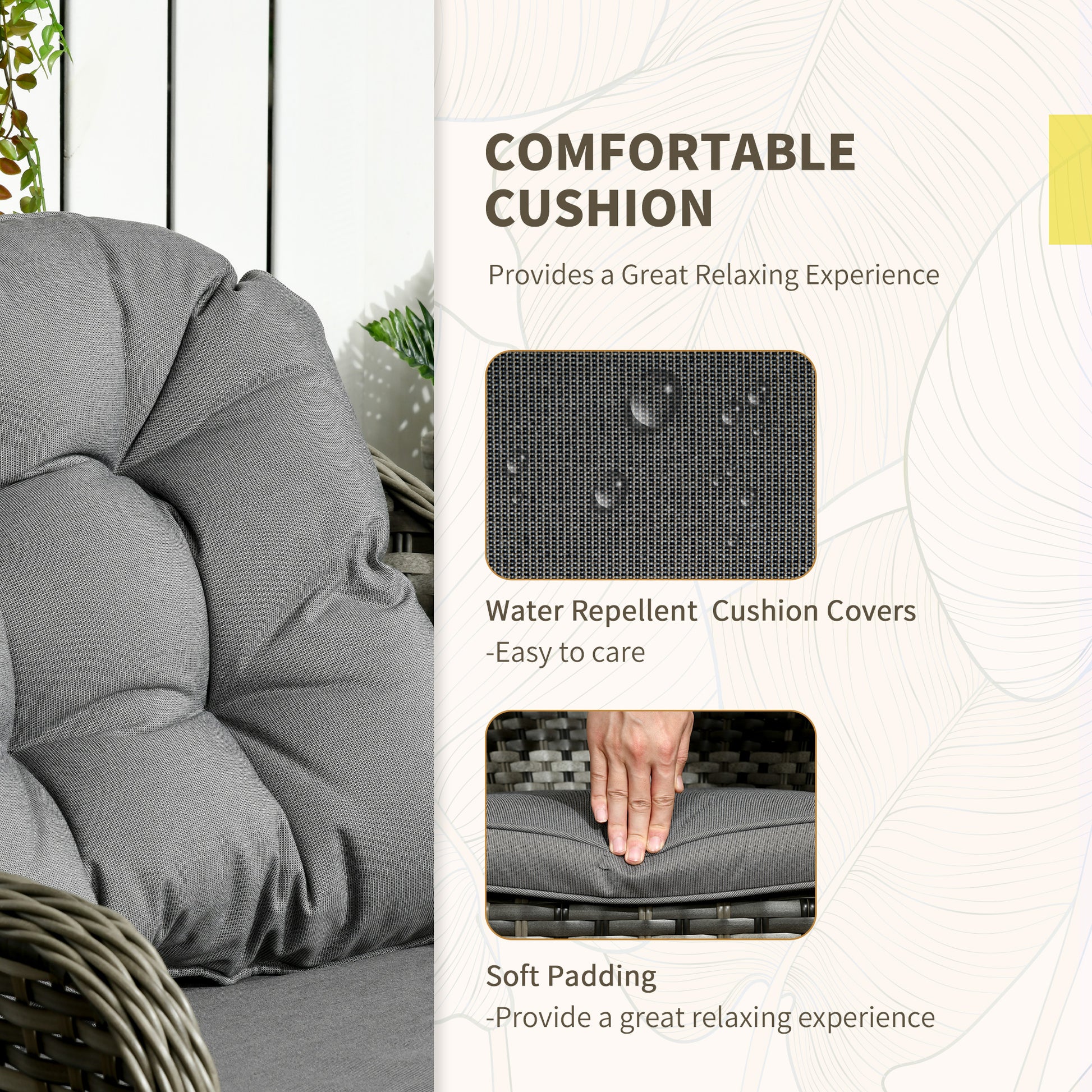 Do those lazy afternoons in the sun the right way – choose this outdoor seating set from Outsunny. Formed of three pieces – two armchairs and matching table; enjoy outdoors with company. Powder coated aluminium frame for a strong structure, wrapped in stylish plastic rattan - double the durability. Both chairs come with seat and back cushions for comfort.