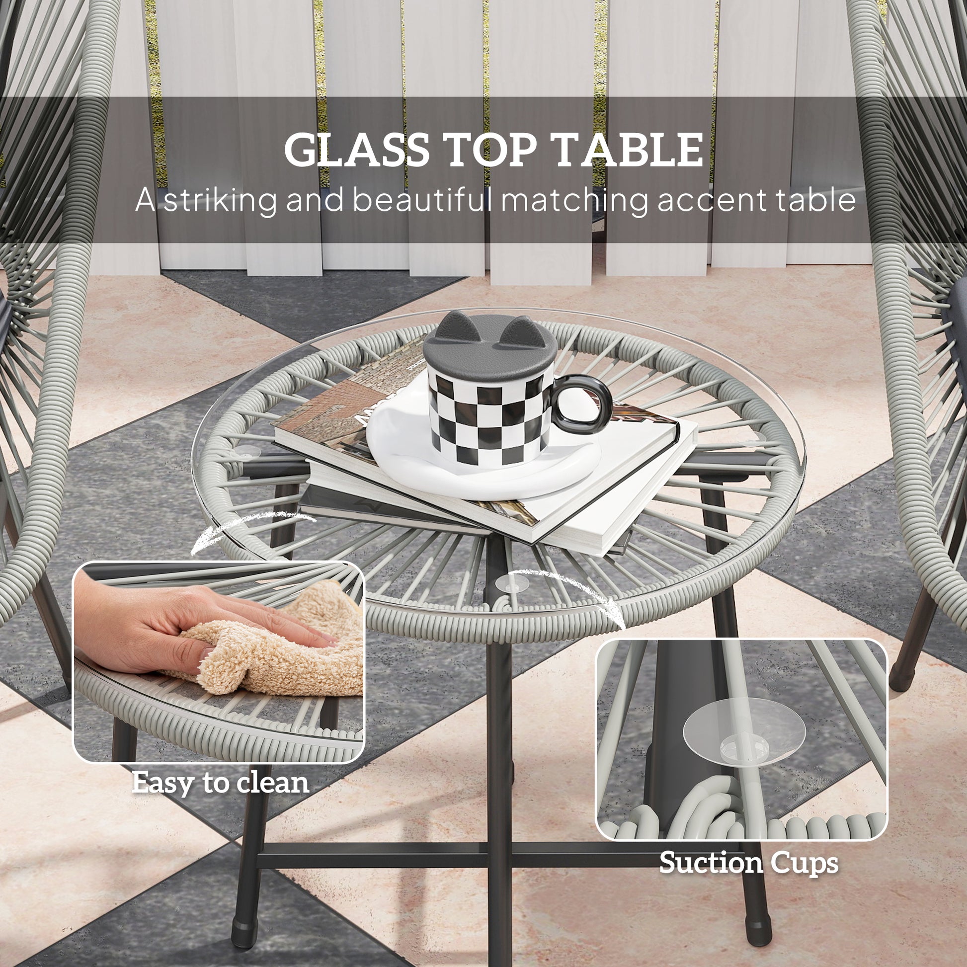 Brighten your outdoor space with the Outsunny garden furniture set, a charming bistro, or a chic lounge addition for small spaces. This small balcony furniture set has two chairs and a matching glass-top table. Powder-coated steel frames offer a strong core to bistro table and chairs. Soft seat cushions make this small garden furniture a stunning and cosy corner for friend hangouts, daily talk and sunset viewing.Specifications