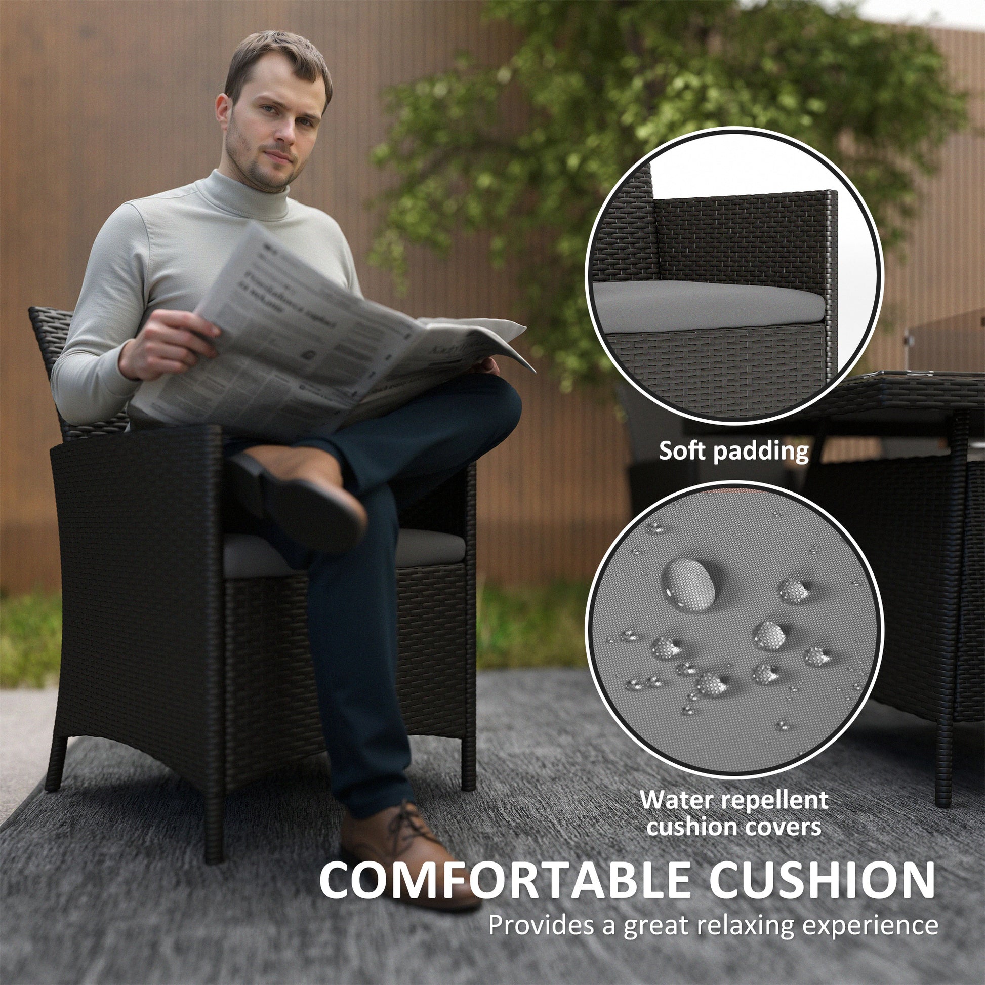 Rattan Dining Set with Fire Pit Table and Armchairs, Black