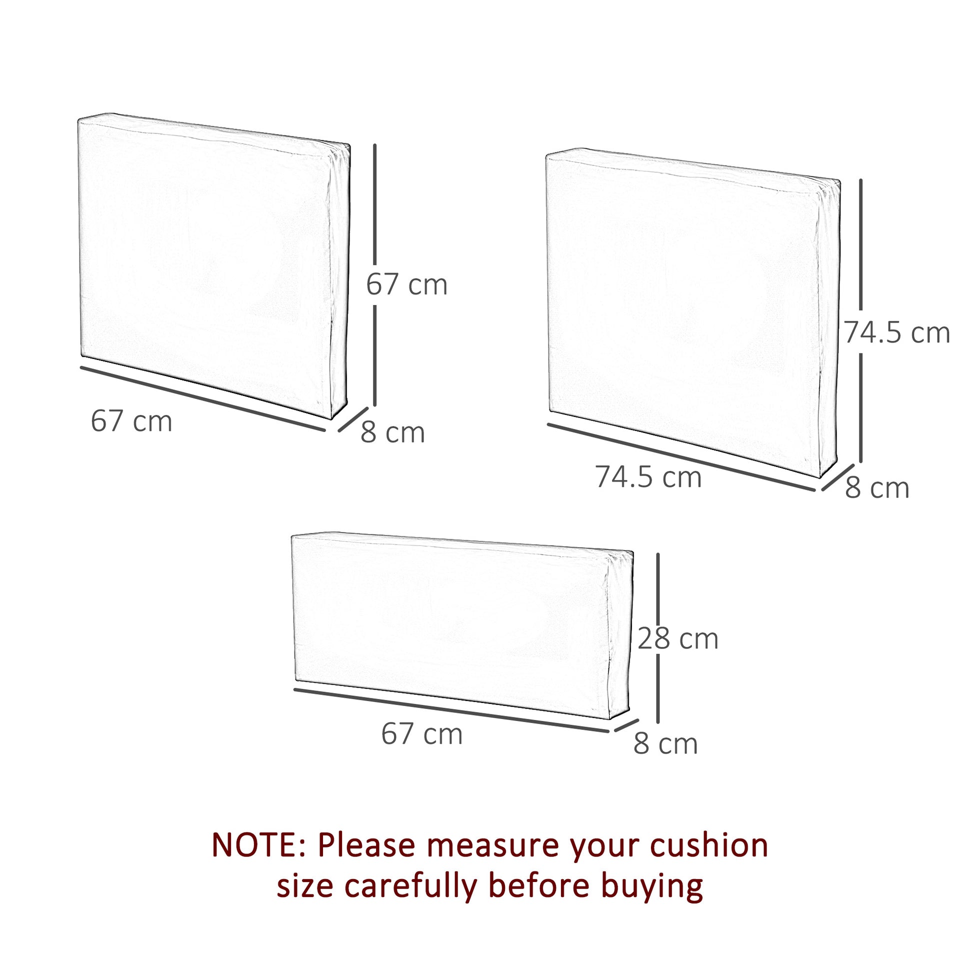 - DIMENSIONS: Small Seat Cushion: 67L x 67W x 8Dcm. Big Seat Cushion: 74.5L x 74.5W x 8Dcm. Back cushion: 67W x 28H x 8Dcm. Please measure your sofa cushion size before buying ( Max Cushion Thickness: 8cm)