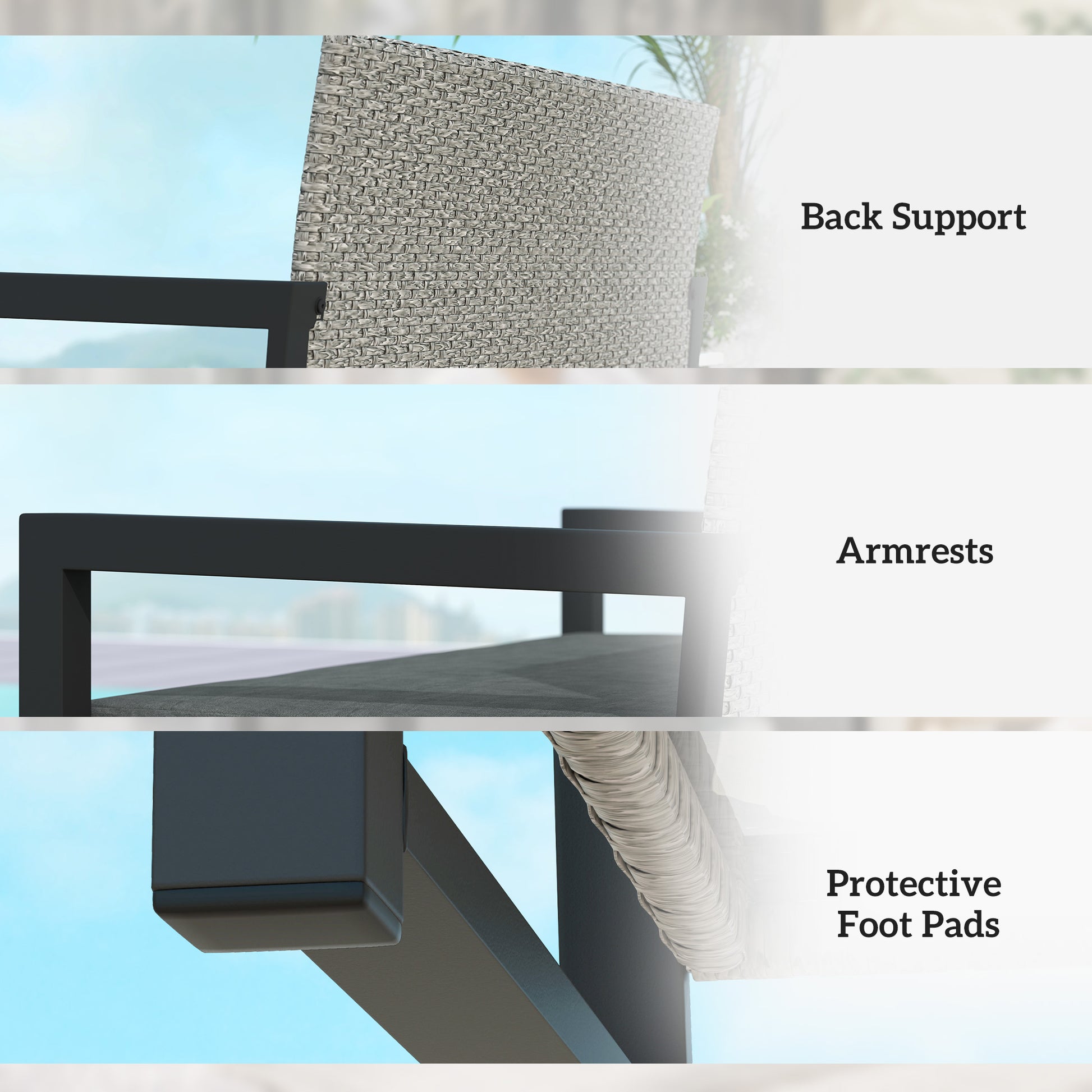 - Powder-coated steel frame provides strength, encased in all-weather plastic PE rattan
