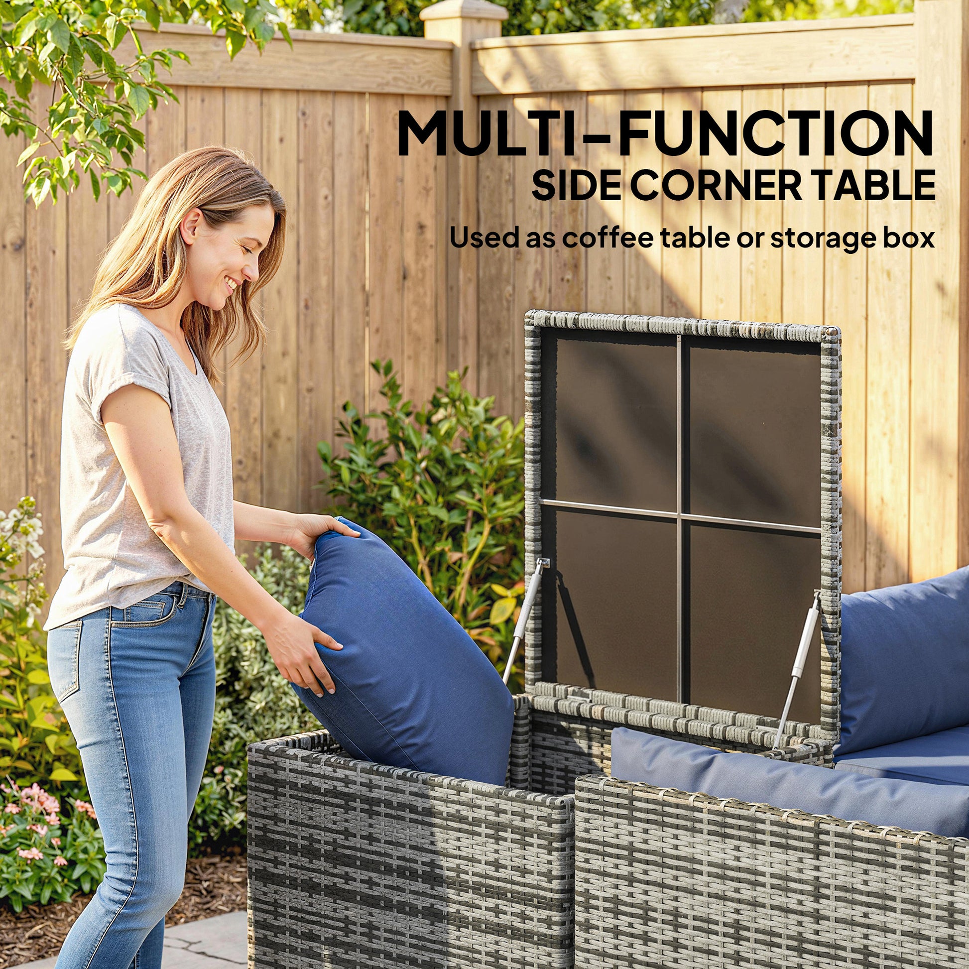 Rattan Garden Furniture Set with Storage Table, Cushions, Dark Blue