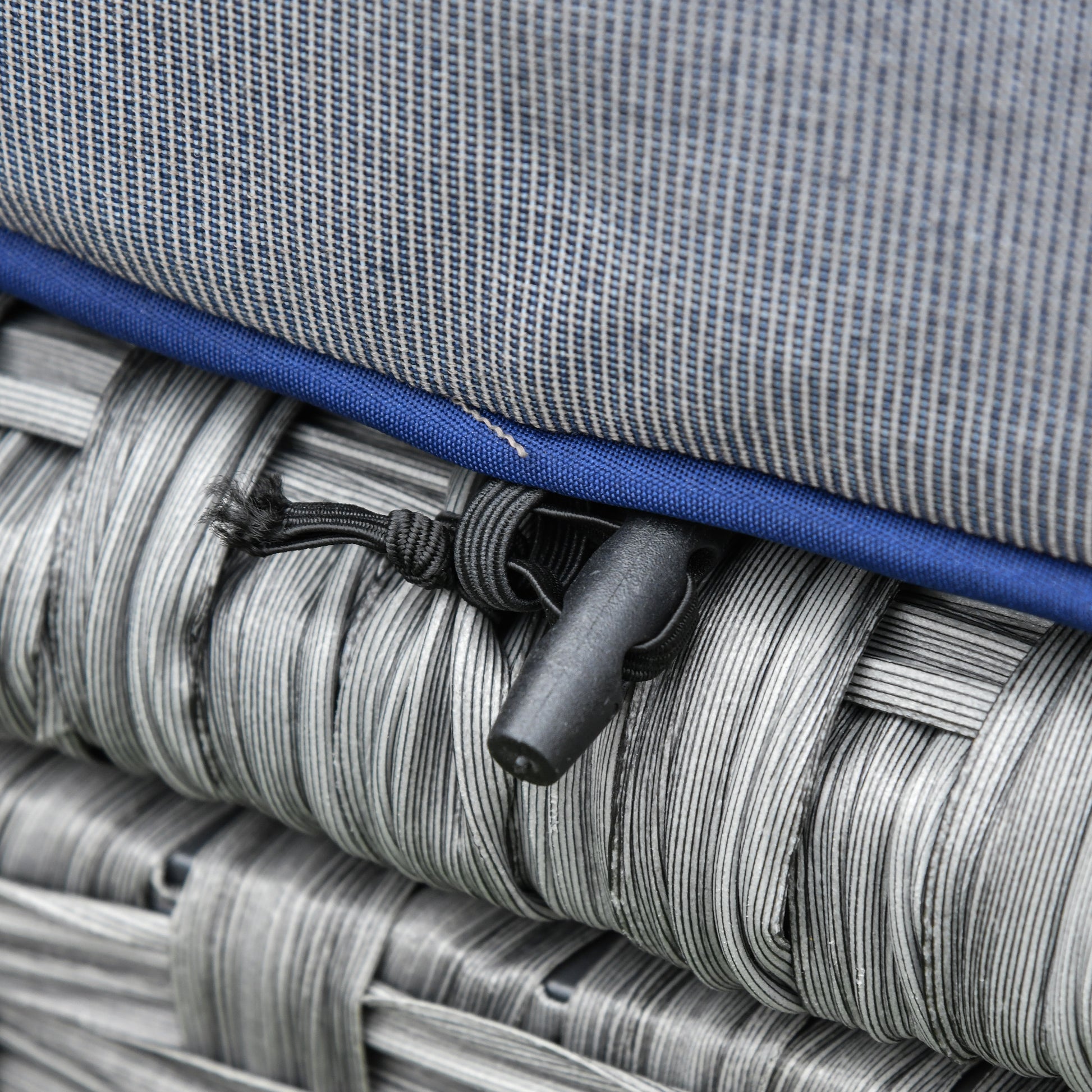 Bring your closest together outdoors this summer with this dining set from Outsunny. This six-piece set holds up to six people with the two armchairs, two footstools and two-seater sofa. The table provides spacious dining and holding room, whilst the footstools are great for relaxingly elevating your feet and legs. The frames of each piece are made from tough powder coated metal for a solid base, wrapped in weather and fade resistant PE wicker for double the protection and durability. Set is finished with a tempered glass table top which is solid and sleek.