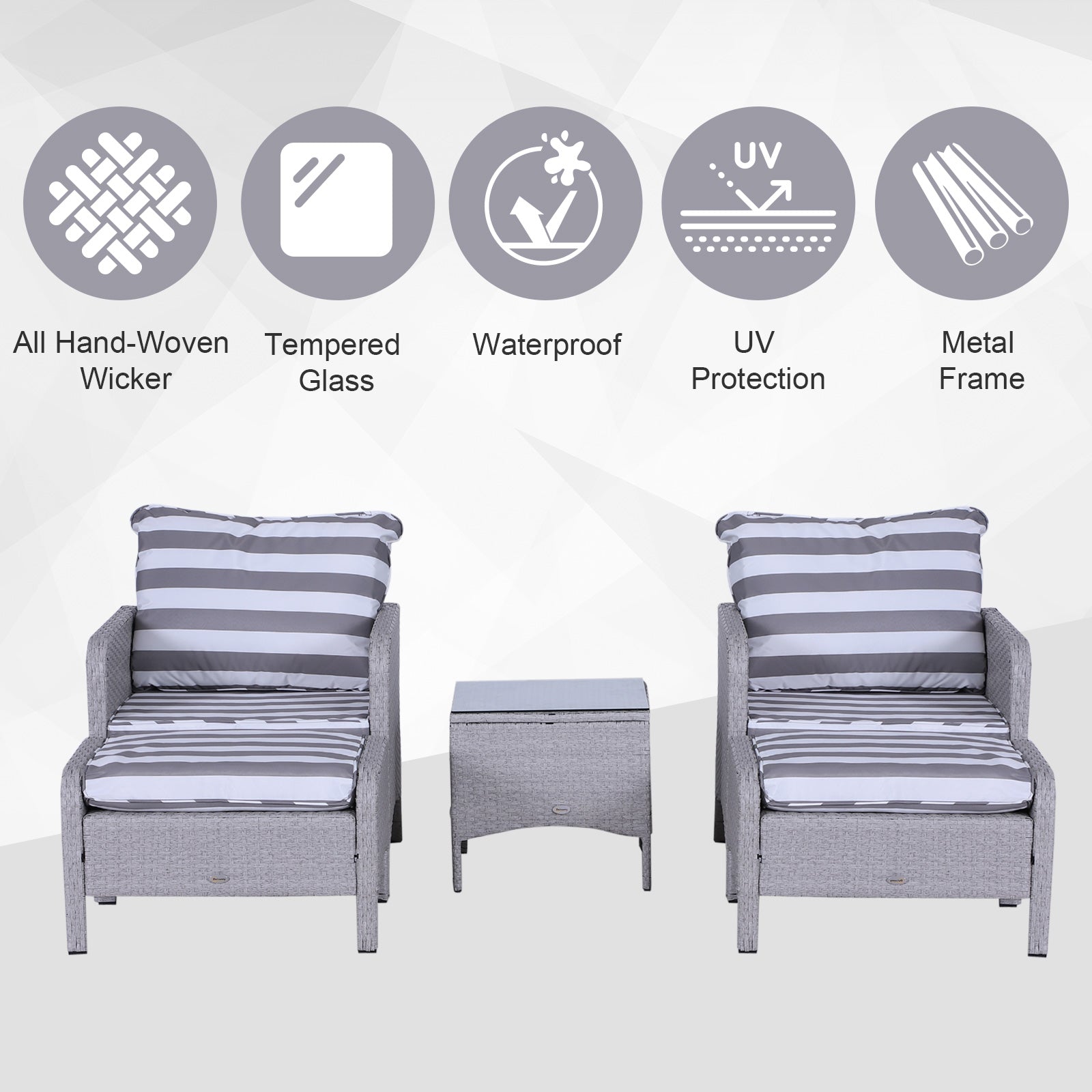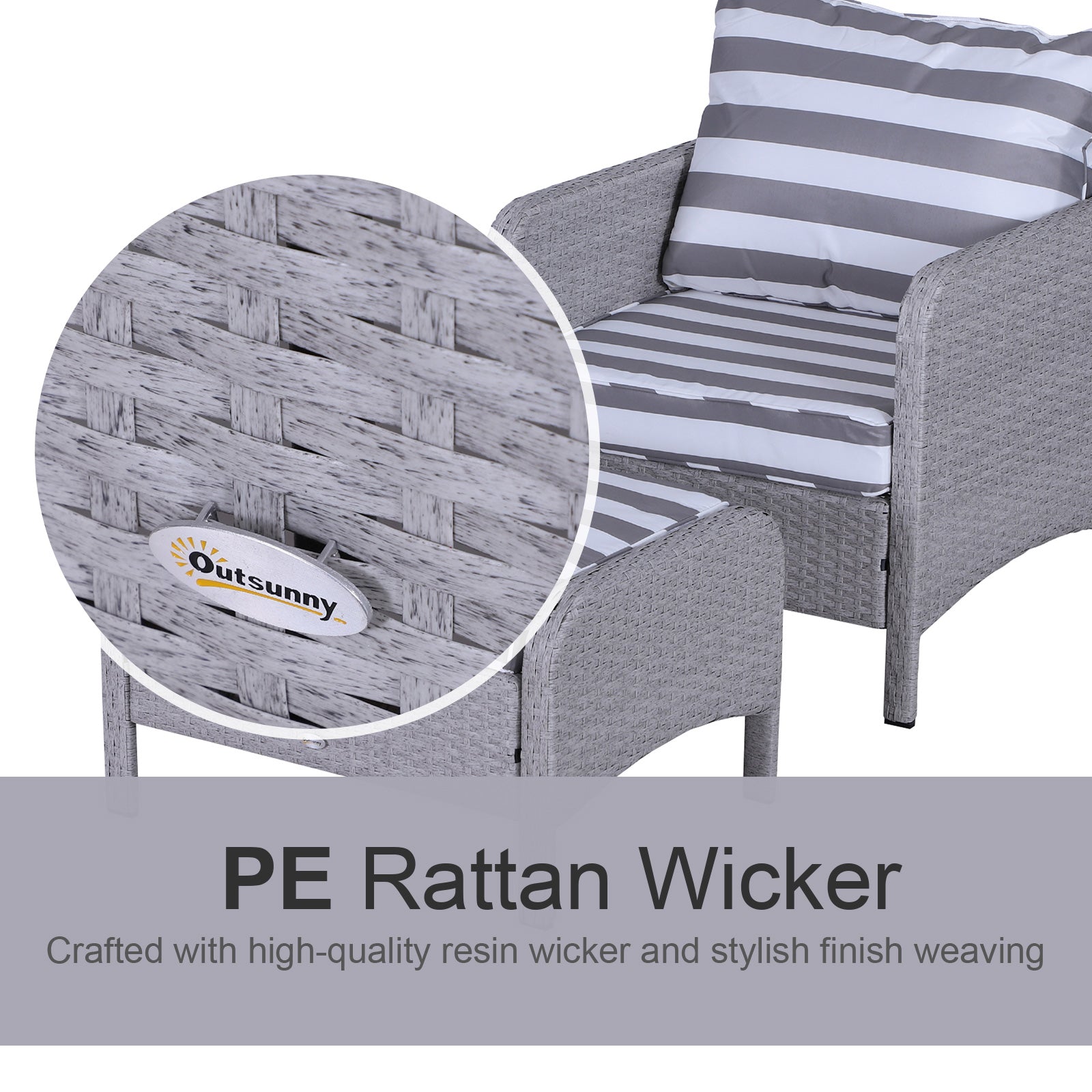 2 Seater PE Rattan Garden Furniture Set, 2 Armchairs 2 Stools Glass Top Table Cushions Wicker Weave Chairs Outdoor Seating - Grey