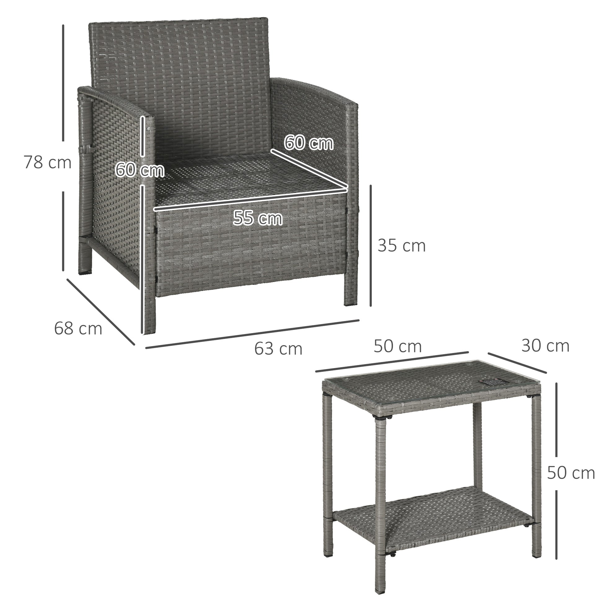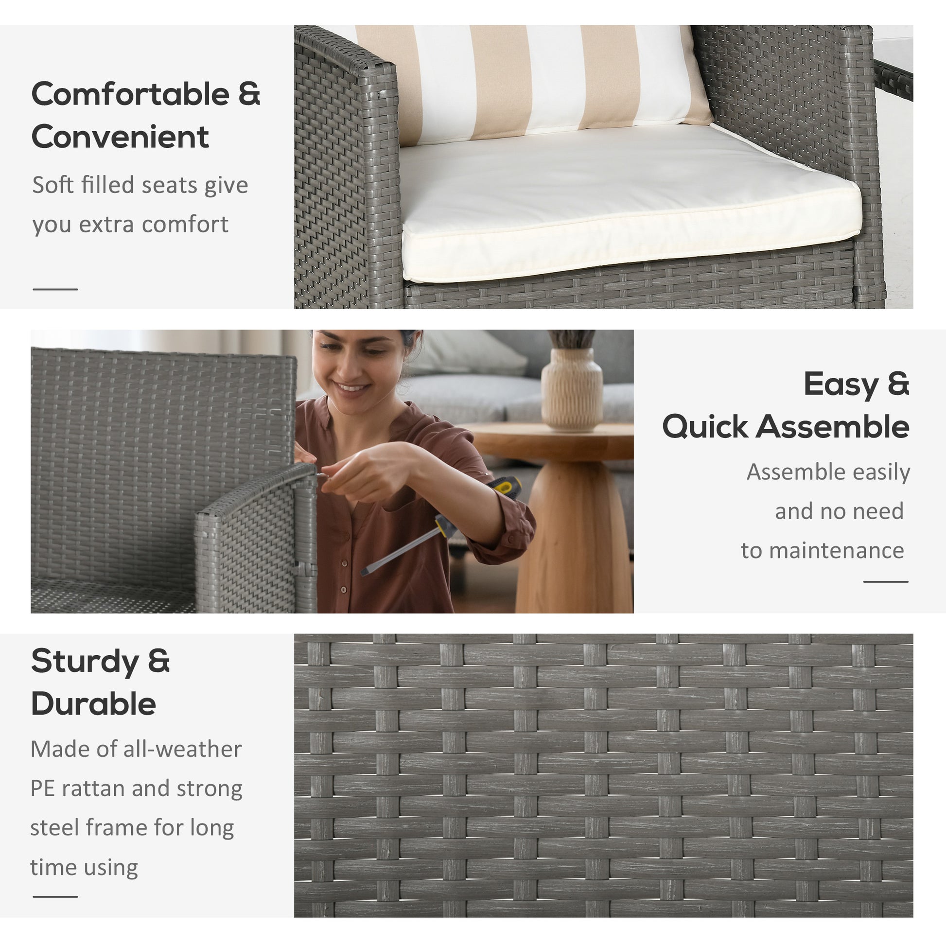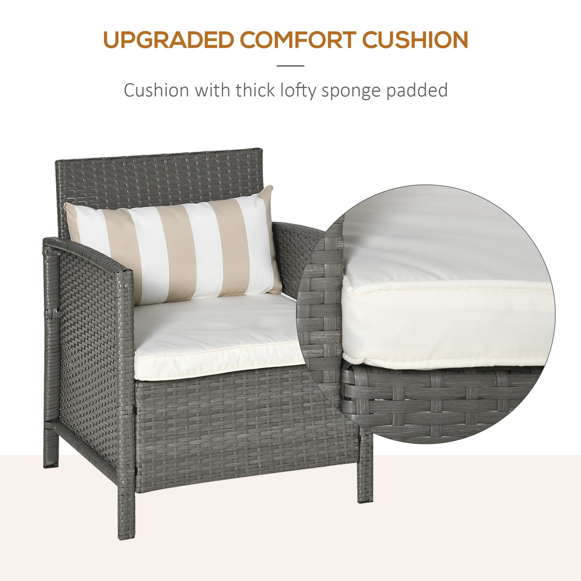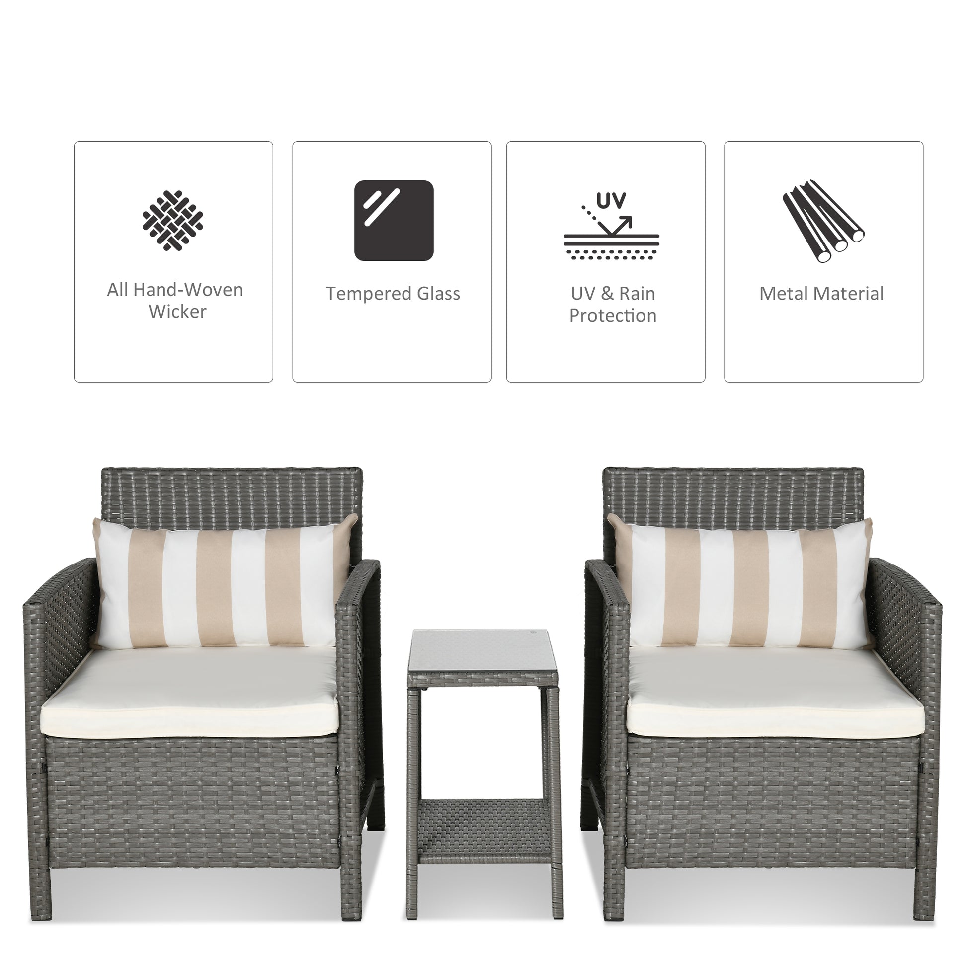 Rattan Garden Furniture 3 Pieces Patio Bistro Set Wicker Weave Conservatory Sofa Chair & Table Set with Cushion Pillow - Light Grey