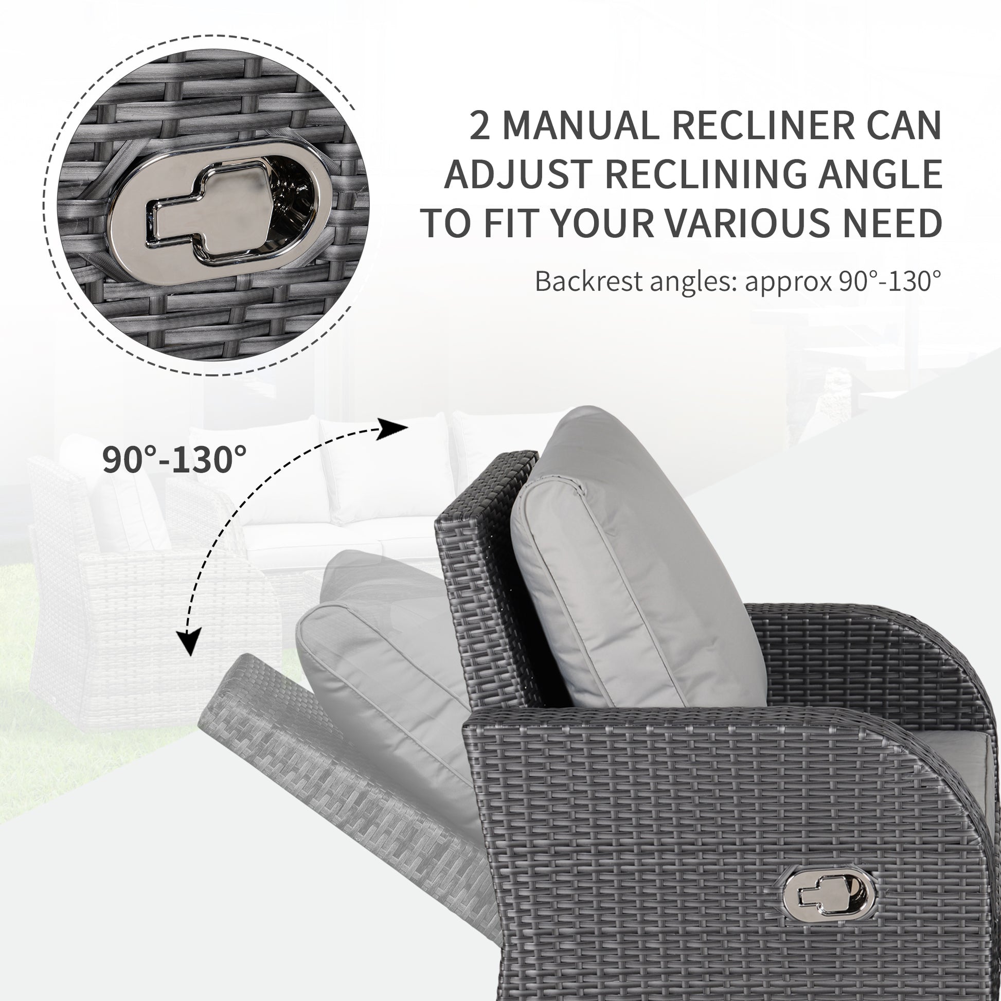 7 Seater Sofa & Coffee Table Footstool Set Outdoor Patio Wicker Weave Reclining Chair Space-saving - Light Grey