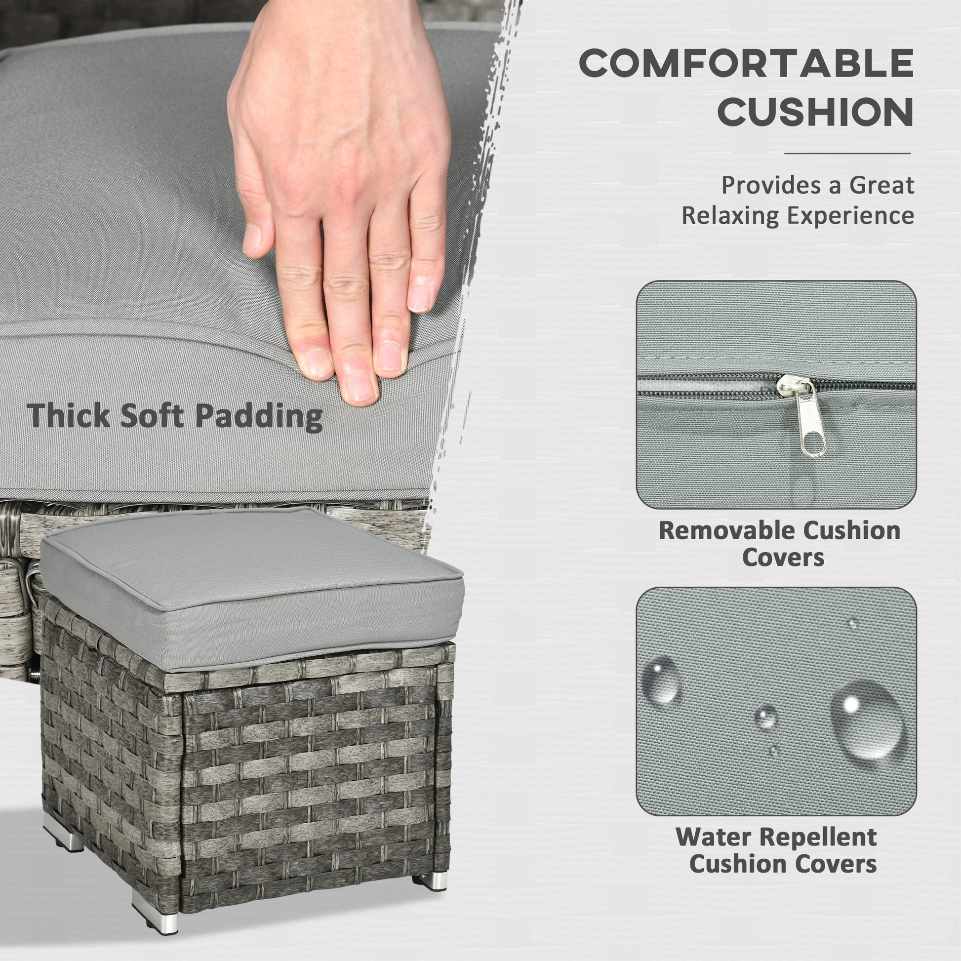 Outsunny 7 Pieces PE Rattan Garden Furniture Set, 50,000 BTU Gas Fire Pit Table, Double Corner Sofa and 3 Footstools, 6 Seater Furniture Sofa Sets with Cushions for Conservatory, Grey