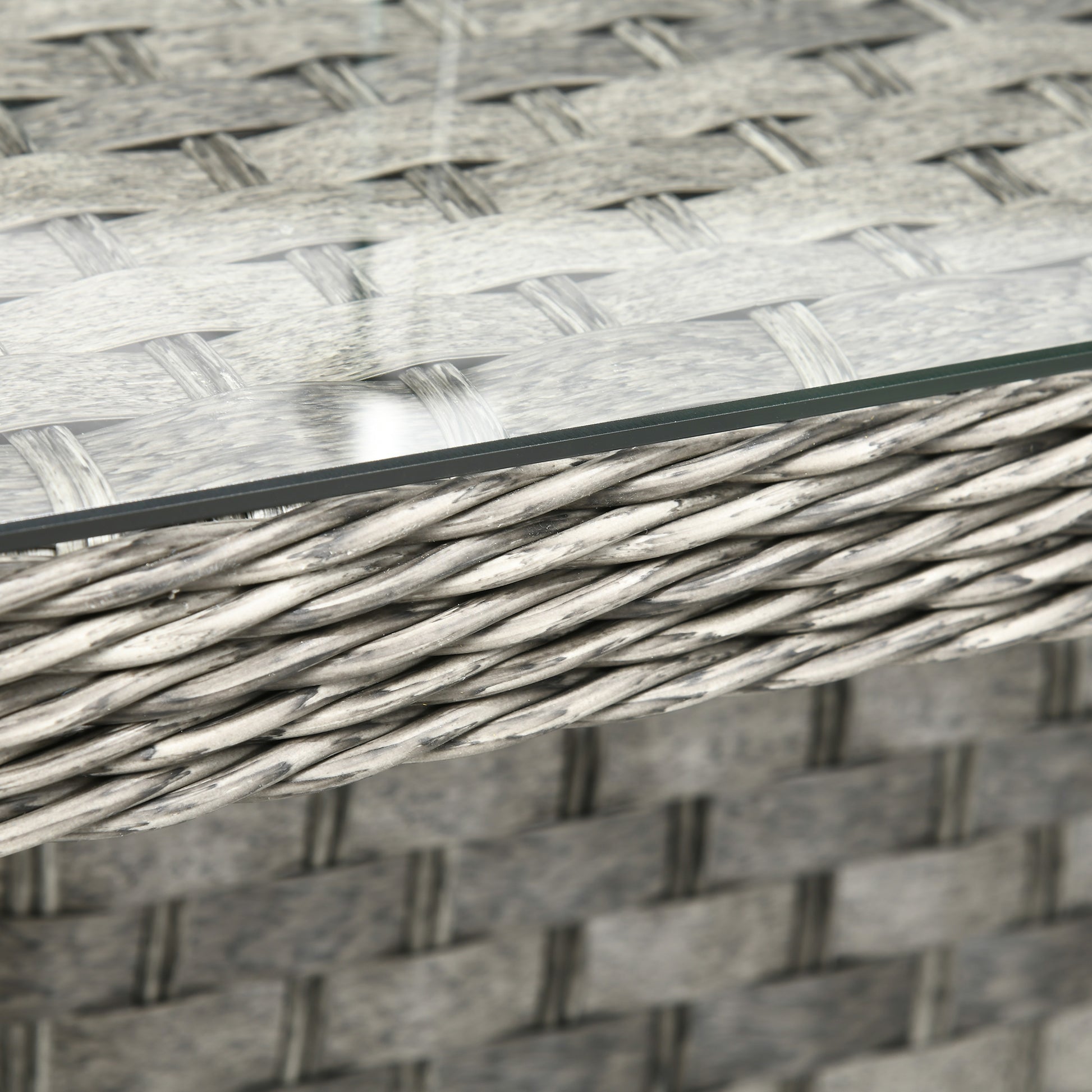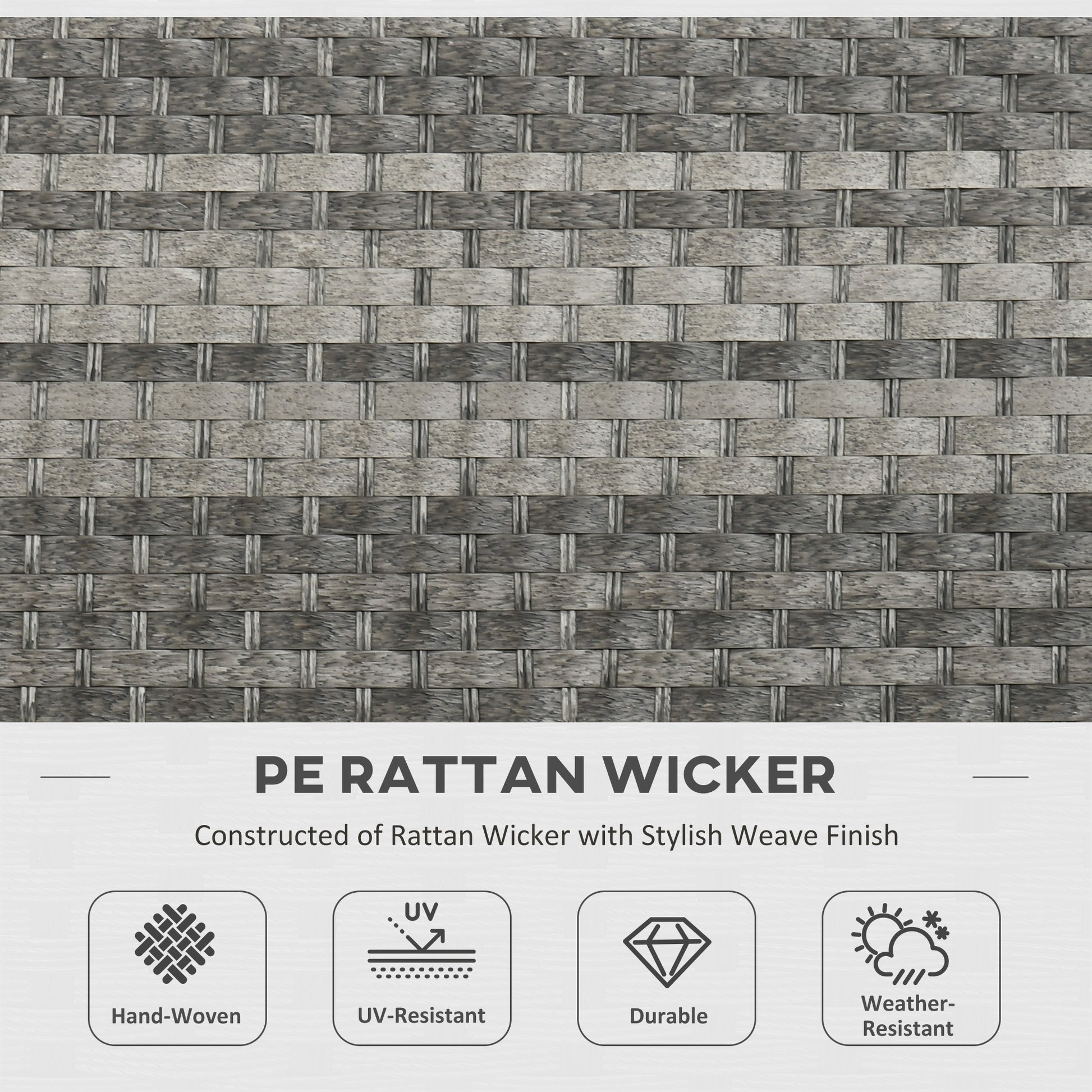 Relaxing evening times need never be cold again - do it in one with this Outsunny rattan set, with fire pit table. The two corner loveseats, standard loveseat, three footstools and matching fire pit table mean there's room for your favourites to gather round, with the table giving you somewhere to eat and drink from. In the middle of the table, there's a fire pit: provides up to 50,000 BTU power - plenty of heat for the colder climes. There's a wind guard for the fire, so you can keep peace of mind, at all times.