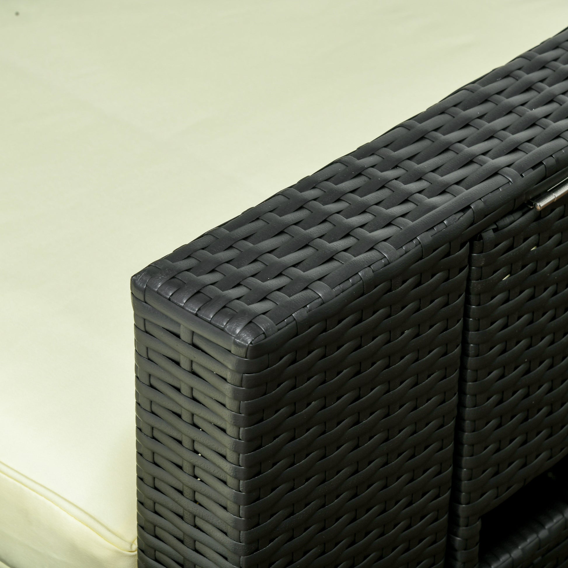 This Outsunny set combines reclining garden furniture, with storage and most importantly, somewhere to relax with a friend. It comes with two reclining chairs, two storage footstools and a tempered glass-top table. Both chairs feature a reclining back: set to five different angles so you can relax the way you want to. A steel frame forms each piece for strong support, wrapped in stylish plastic rattan: a garden-ready look to be used this season and beyond.