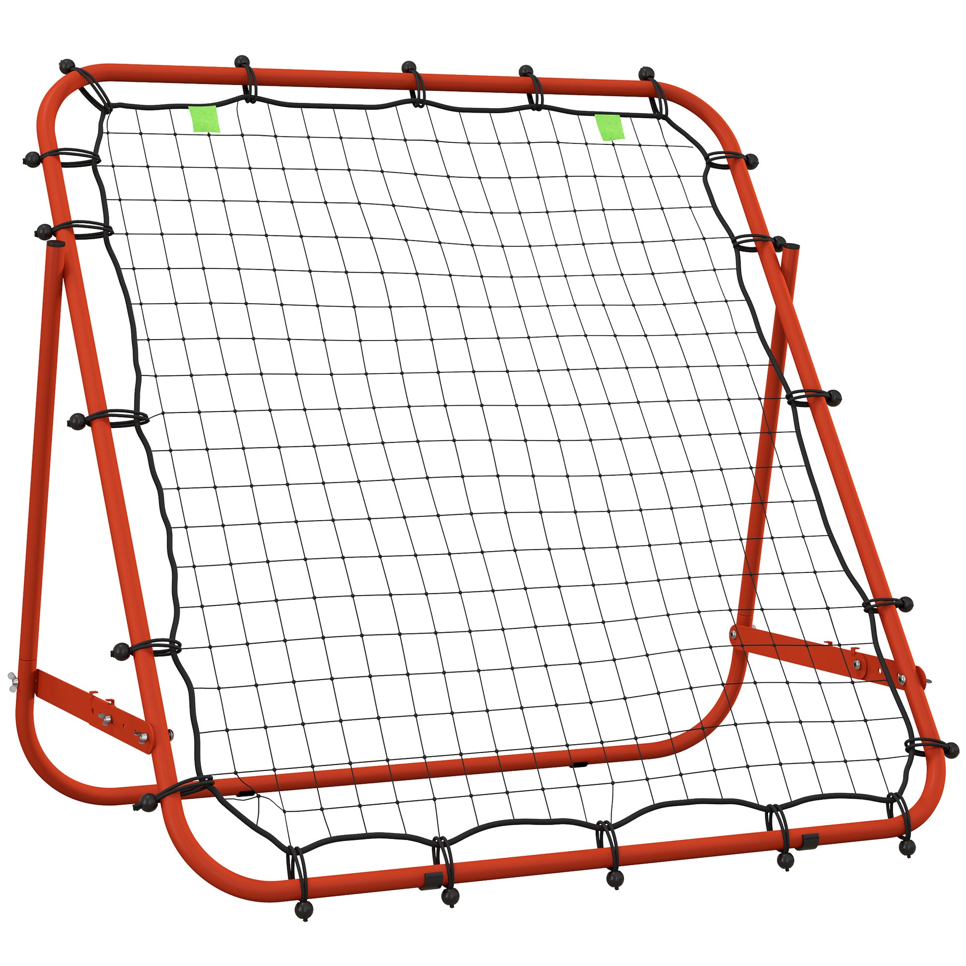 Whether you're a beginner or professional, this Football rebounder net is great for sharpening up your skills, building strength and improving confidence. Made using steel, the frame has been built to last for years of practise, supporting the weather-resistant net via 20 elastic cords that aid in handling the impact when the ball hits. Adjustable at the back to reflect the ball back at various angles for developing your skills and making you more confident playing matches.Specifications