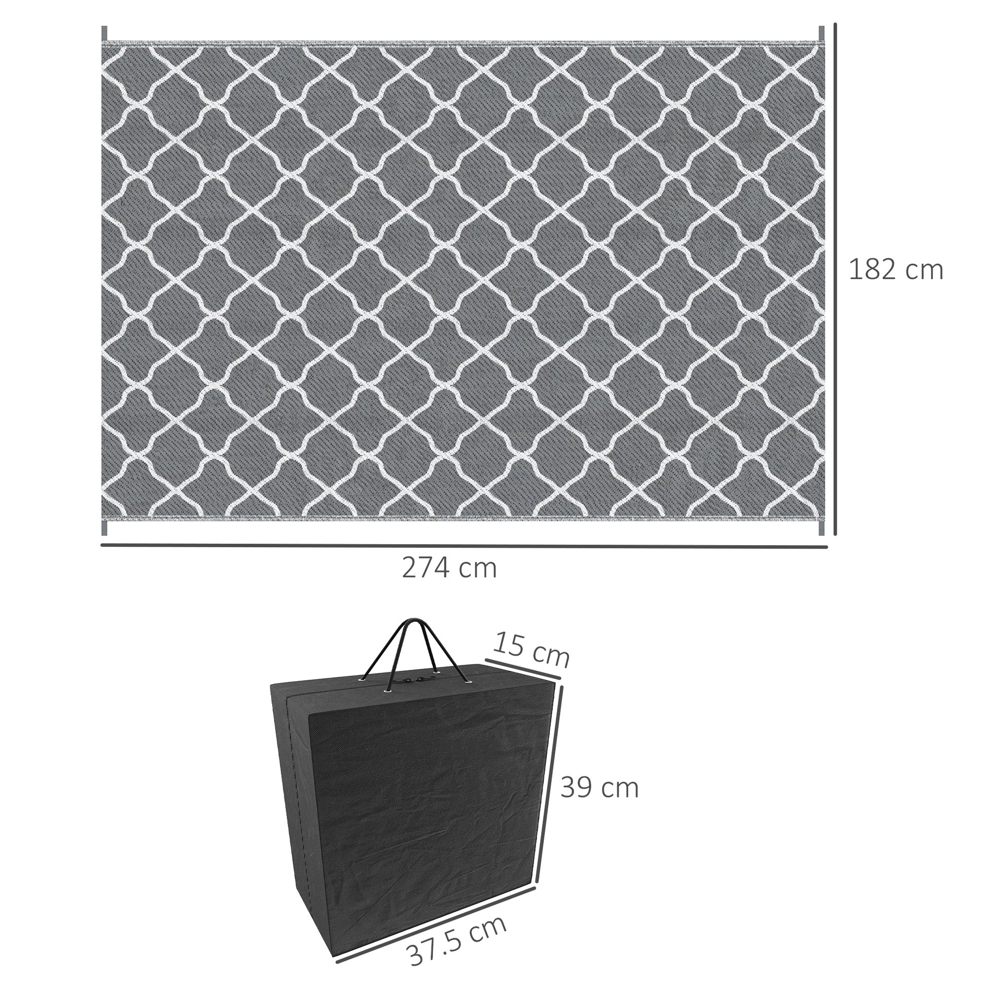 Reversible Waterproof Outdoor Rug W/ Carry Bag, 182 x 274 cm, Grey