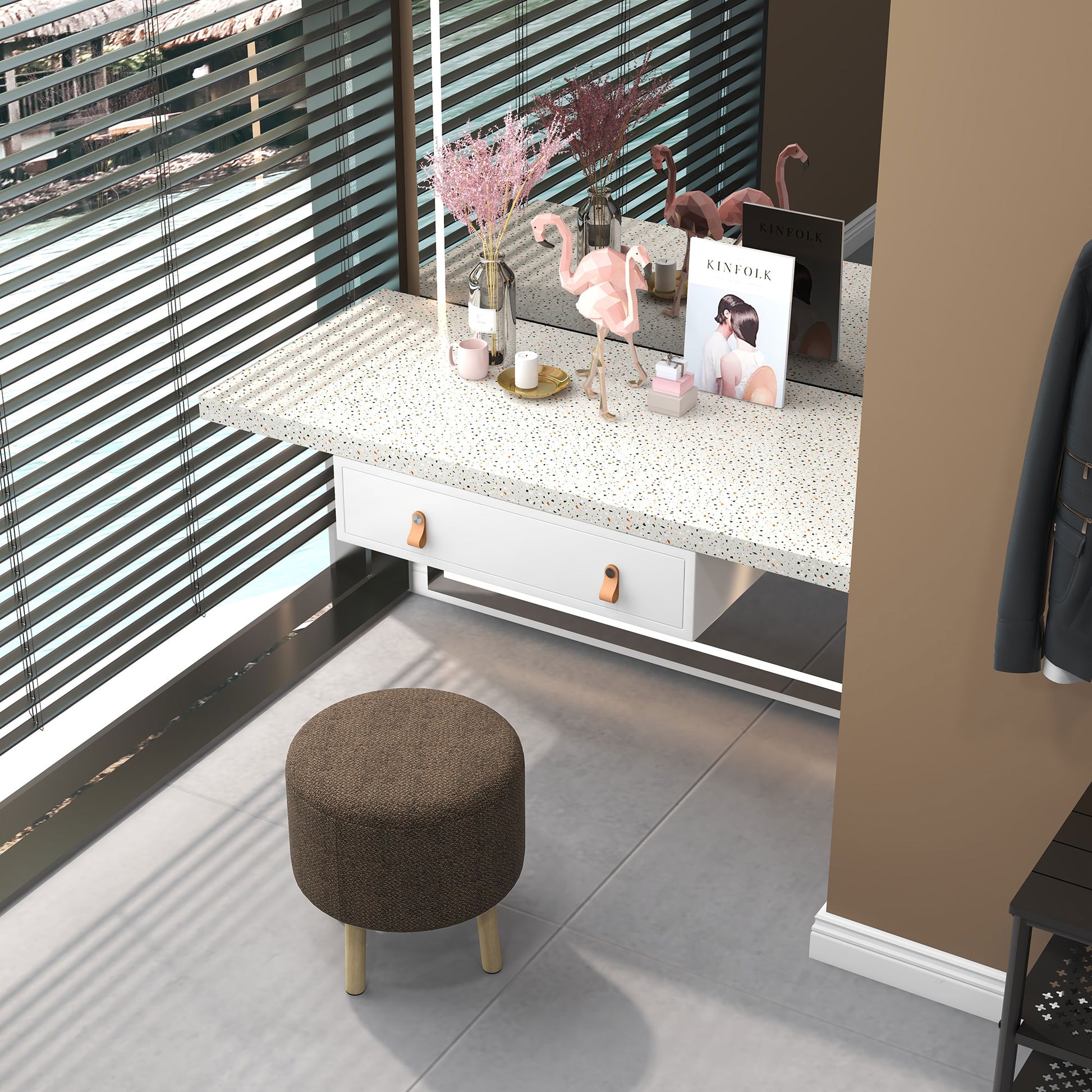 Round Ottoman Stool with Storage, Linen Fabric Upholstered Foot Stool with Padded Seat, Hidden Space and Wood Legs