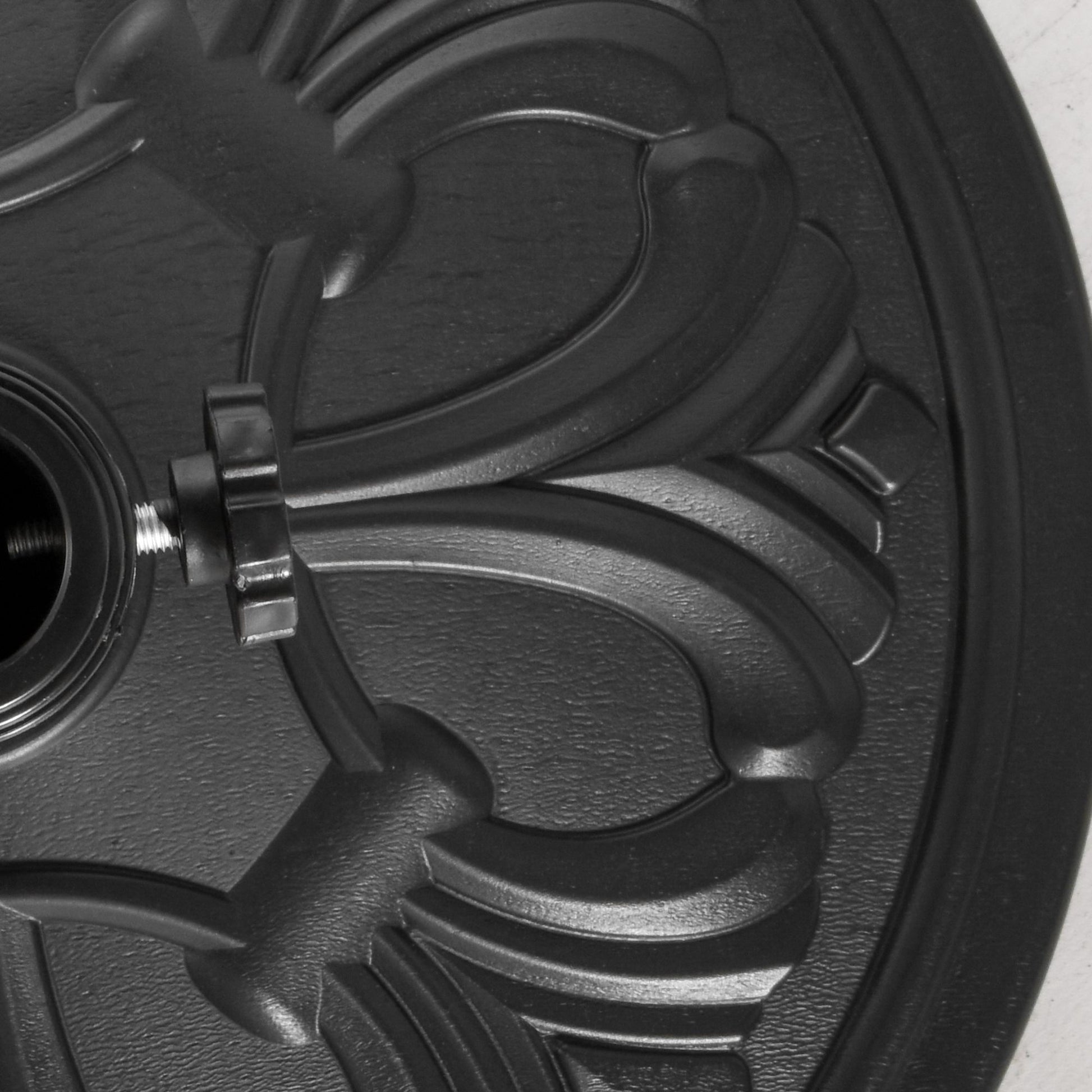 Ensure your parasol is kept firmly in place in all weather conditions with this elegant flower pattern umbrella base . Made from a combination of HDPE, cement and metal, it weighs 13kg in total and can withstand even windy weather conditions. It is finished with a tightening screw and fits poles up to 48mm in diameter, allowing it to hold the parasol securely in place. Strong, beautiful and tough, it has been built to let you enjoy the sun with plenty of shade for years to come.