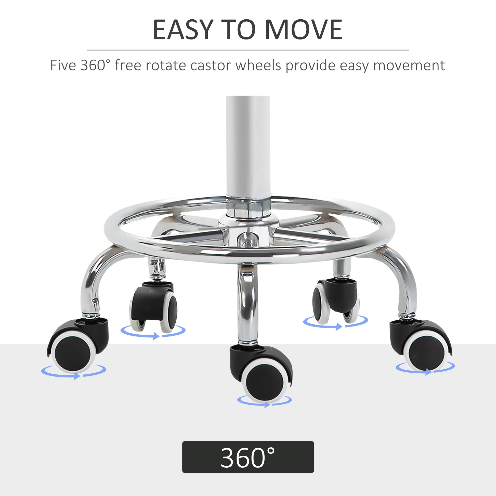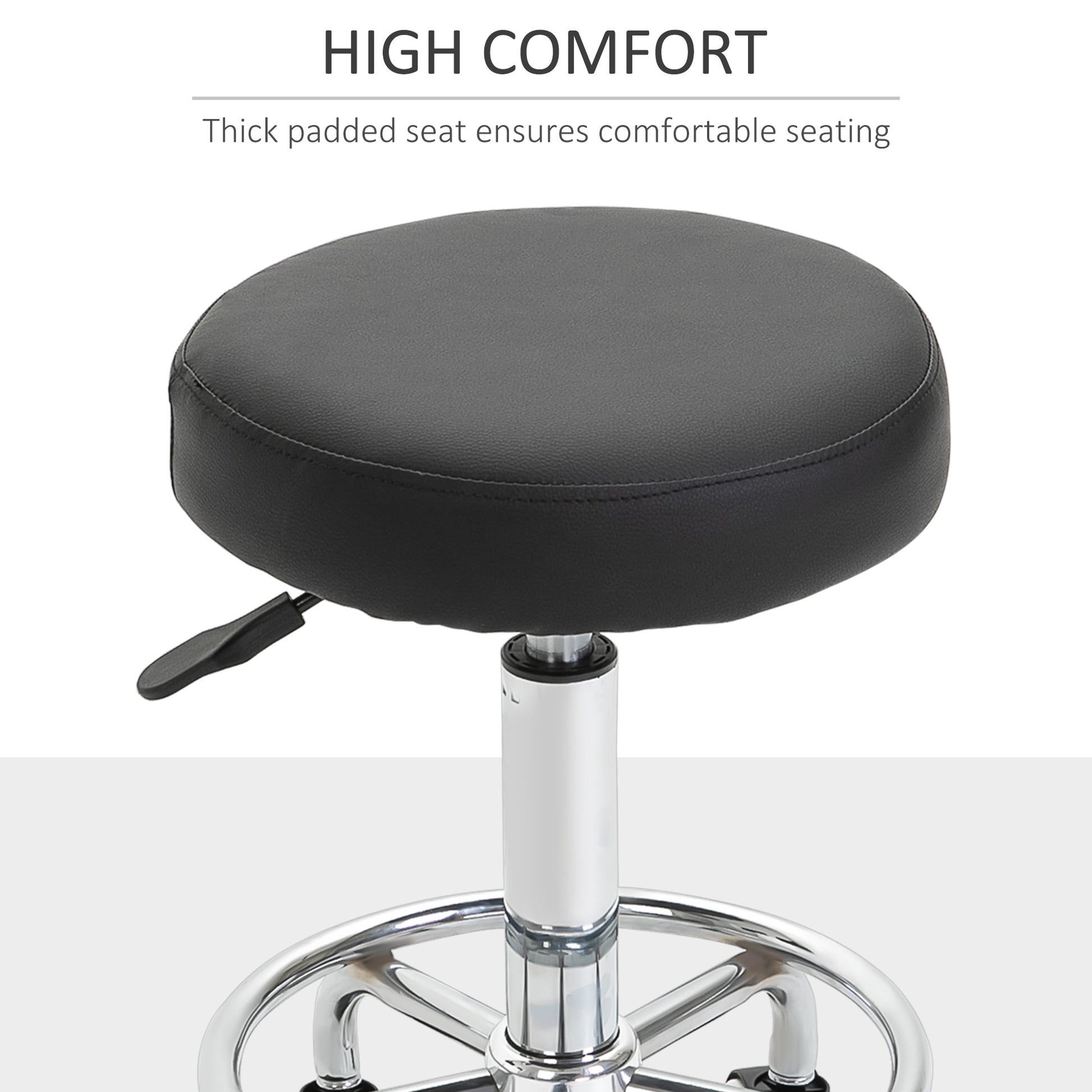 Round PU leather Salon Beautician Stool Adjustable Height w/ Footrest