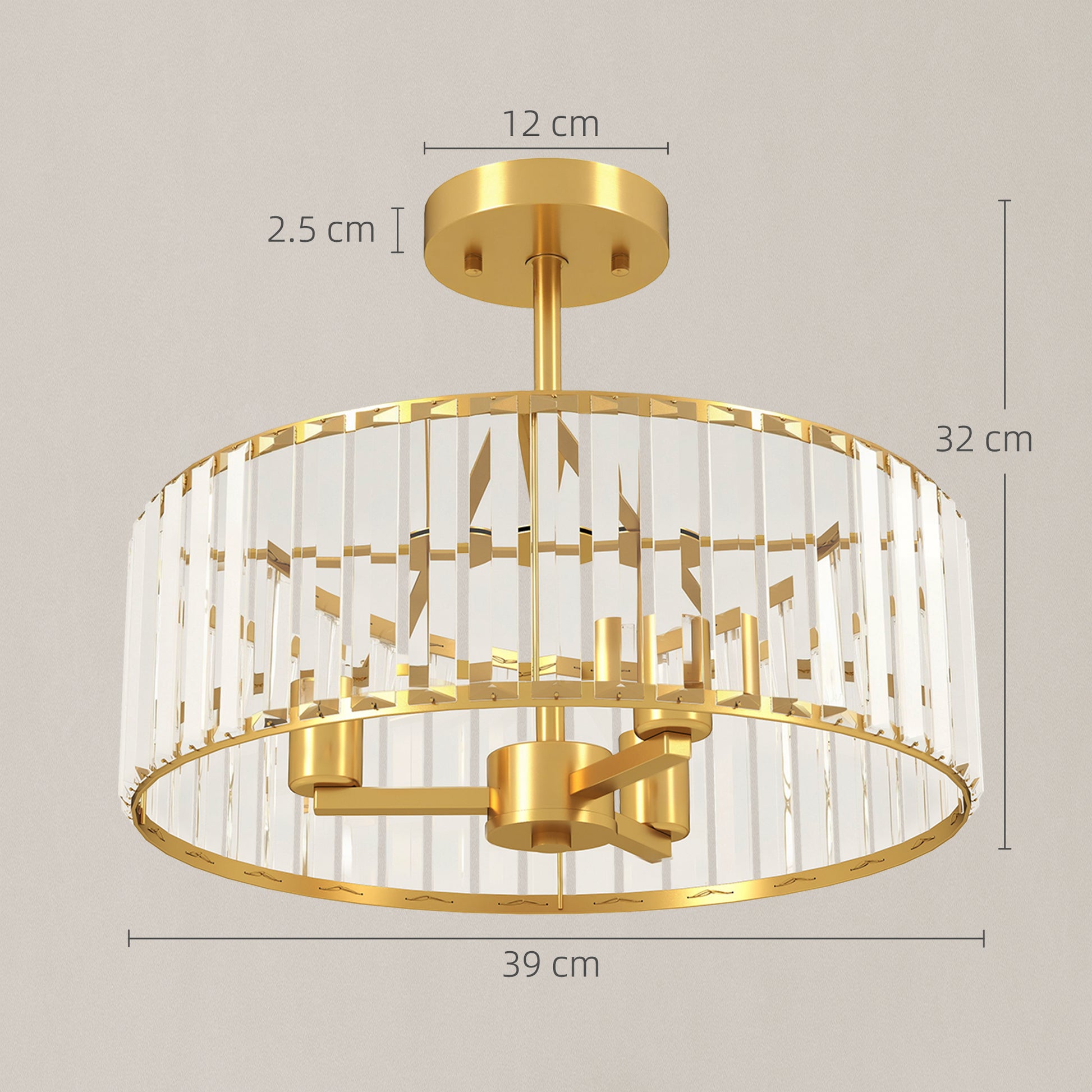 Semi Flush Mount Modern Crystal Chandelier Ceiling Light, Gold Tone