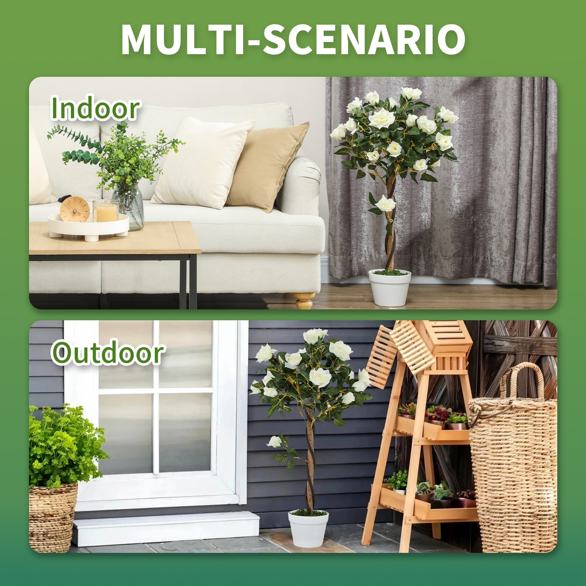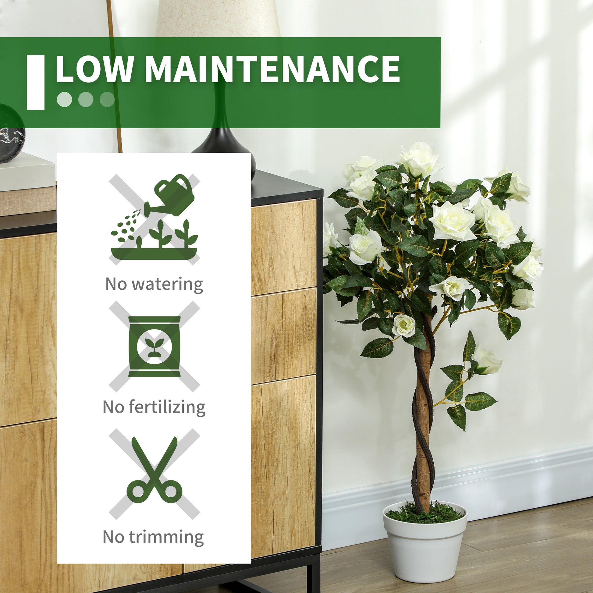 Set of 2 90cm Artificial Rose Tree, Fake Decorative Plant, White