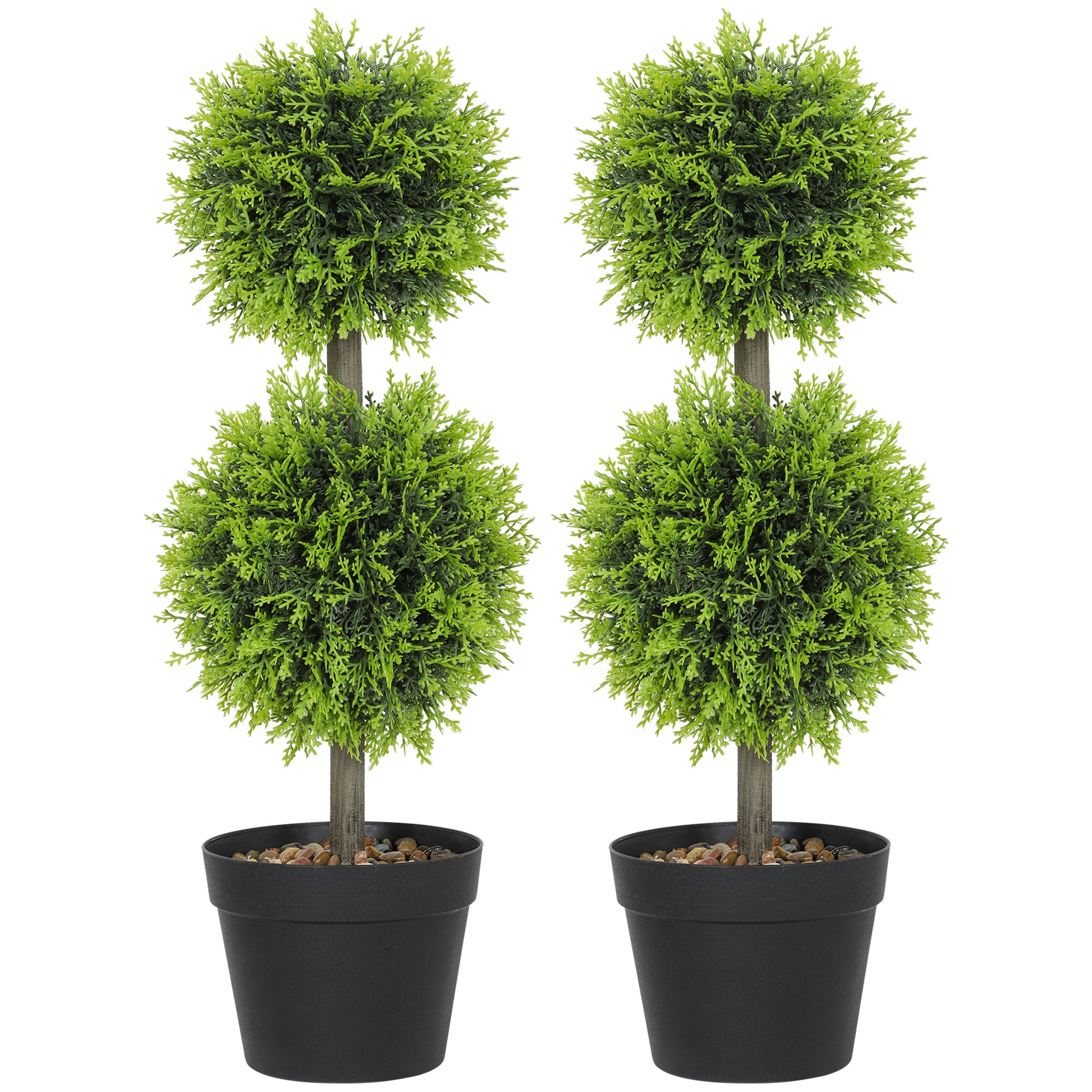 Set of 2 Artificial Topiary Cypress Ball Trees with Pot and Pebbles