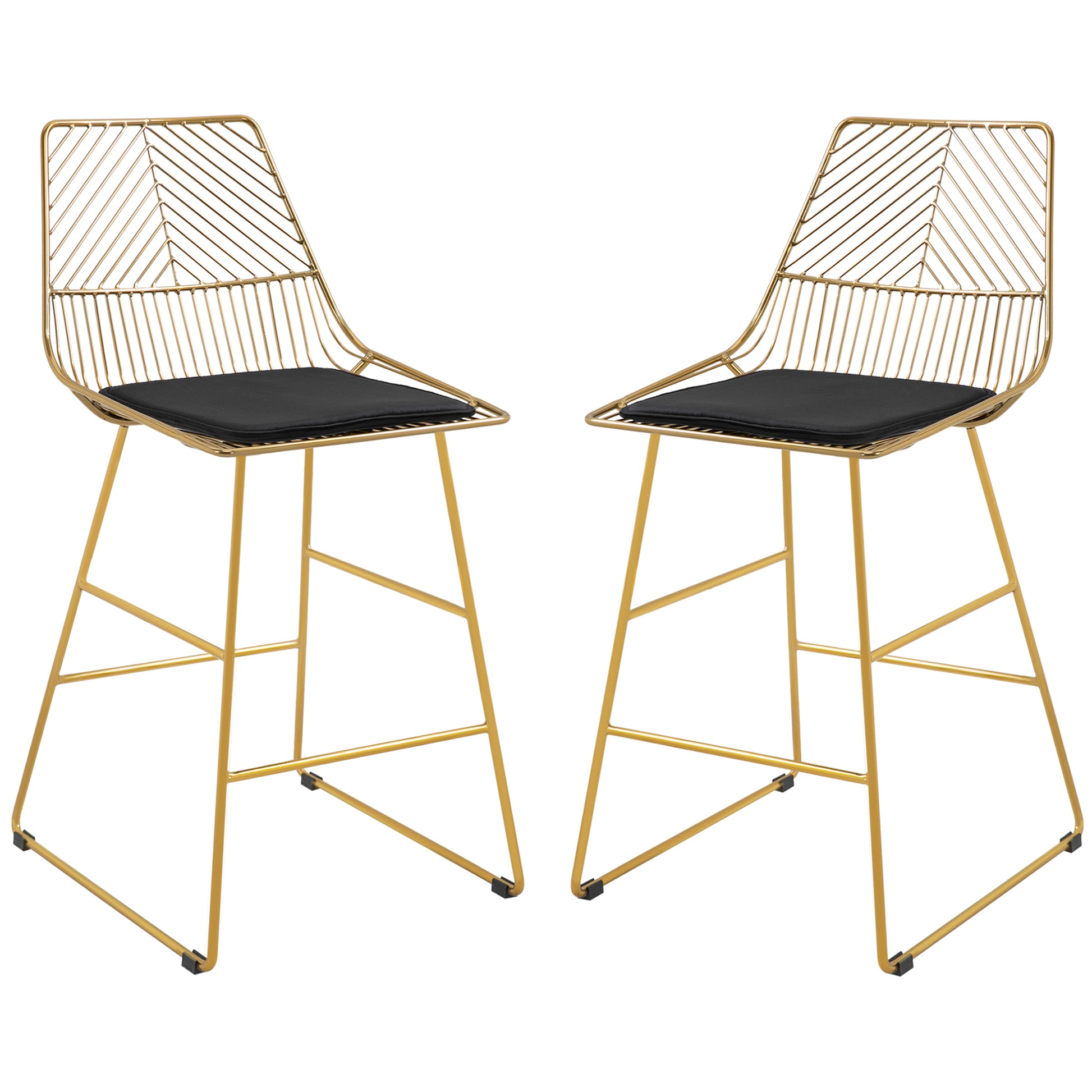 Set of 2 Bar stools Modern Counter Height Wire Metal Bar chairs for Kitchen, Bar Counter, Gold