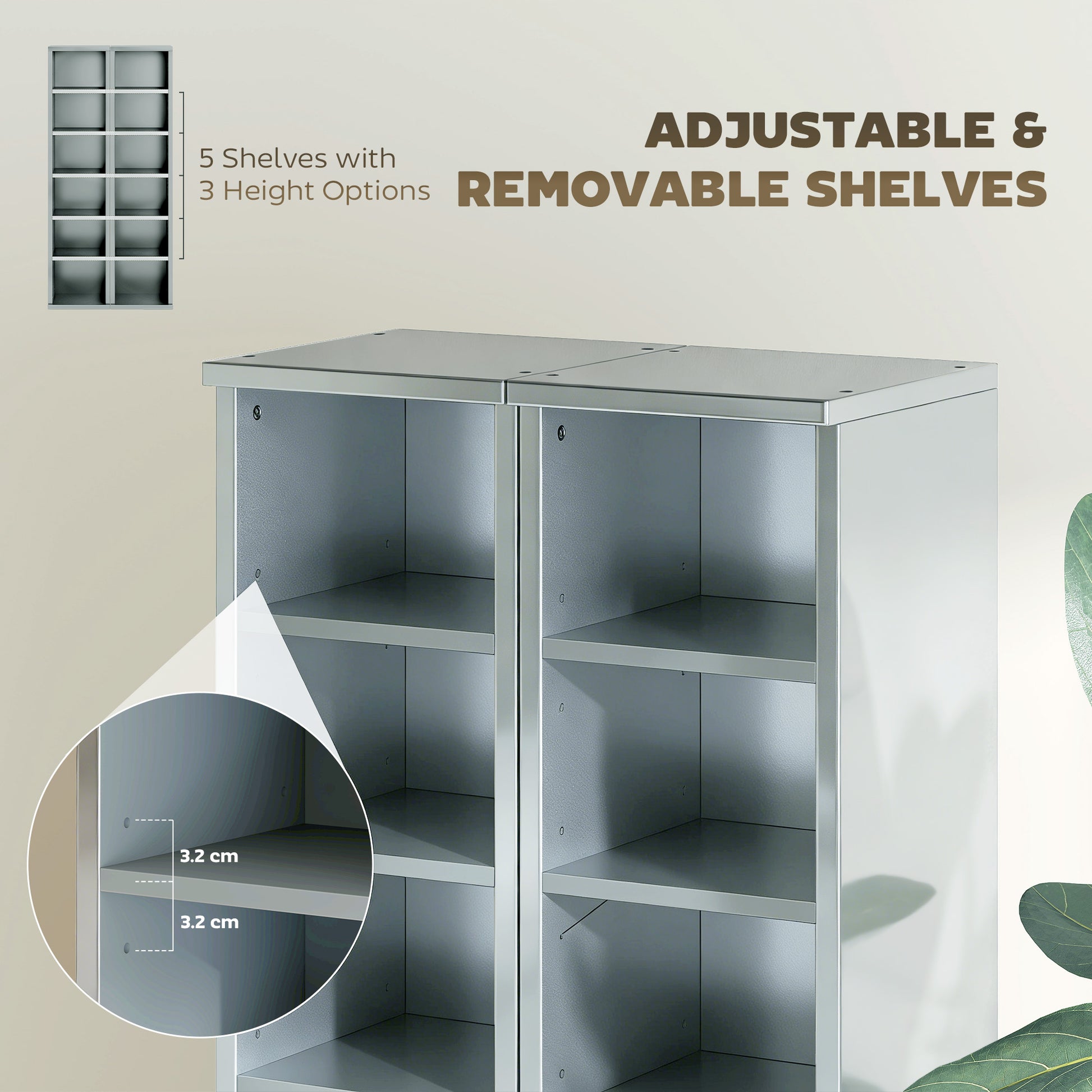Set of 2 CD Storage Units with Adjustable Shelves, High Gloss Grey